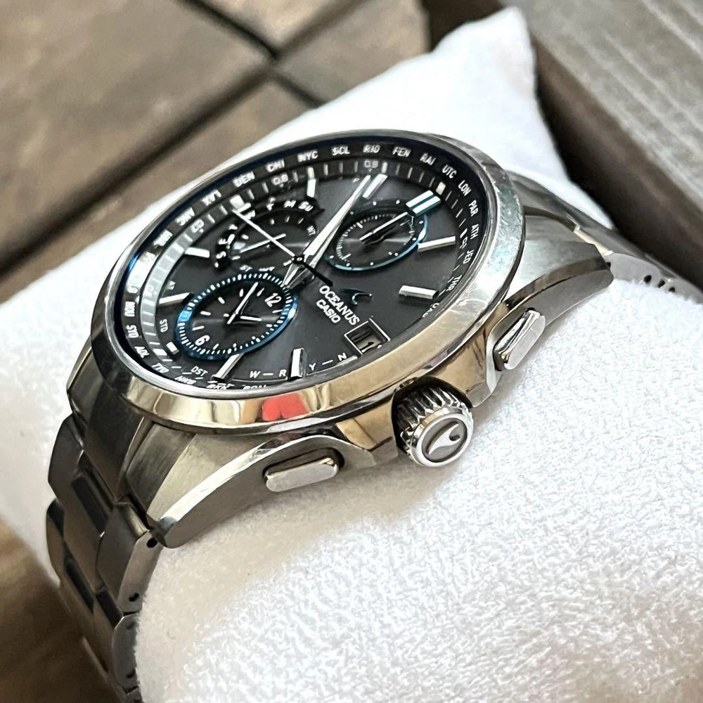 Reference Number: OCWT26001AJF Case Material: Titanium Case Size: 40mm With Original Box/Packaging: Yes Band Color: Silver Model: OCEANUS OCW-T2600-1AJF Type: Wristwatch Display: Analog Watch Shape: Round Country/Region of Manufacture: Japan Department: Men Style: Casual Dial Color: Black Movement: Quartz Case Color: Silver Bezel Color: Silver Brand: CASIO Band Material: Titanium Max Wrist Size: 190mm