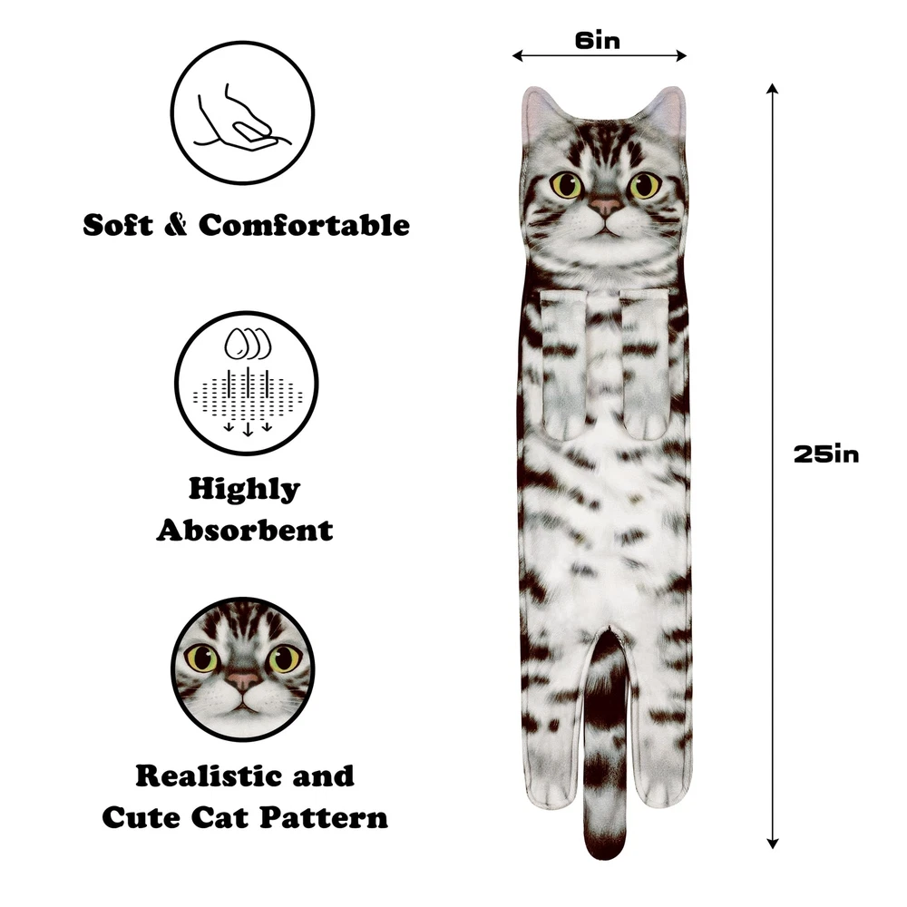 Cat Funny Hand Towels - Cute Cat Decor Decorative Hanging Towels Cat Gifts Housewarming Birthday Gifts for Women Cat Lovers Cute Cat Hand Towel:Funny cat towels hanging on a towel rack,the snap button of the cat's hand prevents the towel from slipping off.When you wipe your hands with the feeling of touching a cat's belly,you will be healed by the soft fabric touch!The pattern on the back,tail and paws are very realistic,so cute that even the towels also make you want to hug them! High Quality Fabric: 85% polyester 15% nylon,soft and comfortable fabric with strong water absorption. It is suitable for wiping hands and face.The cat head with special materials,so that when hanging can stay upright! Perfect Decorative: 25 inch by 6 inch. Maybe you are worrying that your bathroom and kitchen are too boring?It's time for you to have a cat washcloths to decorate them,make your home full of warmth and vibrant. Cat hand towels only dry your water droplets, but also give you the companionship of a cat,add some fun to your bathroom and release your tiredness! Funny Gifts : The cats decorative towel is a perfect gift for all occasions,house warming presents for new home,birthdays,Mother's Day,Christmas,Valentine'S Day,wedding showers,etc. All people,especially the cats lovers,will be surprised and happy when they receive this realistic cat towel! Please Rest Assured to :We're committed to ensuring you have a great experience with our cat hand towels.If you have any issues, we'll find the solution to keep you happy with your purchase. Our Story Everyone in our team are terribly fond of kittens,we are privileged to share our homes with them.They exude cute. They make us smile and warm our hearts with their playful antics. They play till they're exhausted then jump into our laps to win our hearts with their bright eyes and soothing purrs. Homes with cats will be full of warmth. We hope cats can appear on more products, so that more people’s homes can be warmer and more people will feel the cuteness and charm of cats. The moment this towel is hung on the towel rack,the long body of the cat is exposed!The lifelike pattern makes you feel that having such a cat towel is like having a cute kitten.Wiping your hands and face just seems to become a kind of enjoyment of petting cats,who can refuse the feeling of petting a cat every day? The Wish of "Cat Hand Towel": I hope it can bring you happiness every day,and release your tiredness. Decorate your kitchen and bathroom,make your home full of warmth and vibrant. To be a lovely gift to deliver love and joy for you and your friends and family. Shipping We offer FREE shipping on all orders! We ship within Three business days of payment, usually sooner. We use a selection of shipping services such as UPS, FedEx, USPS etc., unable to choose a carrier. We only ship to the lower 48 states, no APO/FPO addresses or PO Boxes allowed. Sellers generally can’t change the shipping address that you provided at checkout. Local pickups and combined shipping options are not provided at this time. International buyers - please note: Import duties, taxes, and charges aren't included in the item price or postage cost. These charges are the buyer's responsibility. Return You can return a product for up to 30 days from the date you bought it by using the seller's FREE RETURN LABEL only. Any product you return must be in the same condition you received it and in the original packaging. International buyers - Rejection and return of the product requires the buyer to pay all shipping and return costs. Please return with the reason "Order mistake" or "Changed my mind" or "Does not fit" for a refund, which would be greatly appreciated. If the buyer wishes to return the items for a refund or replacement, please contact the seller to obtain a free return label. The refund or replacement will be processed using the tracking number of the return label, which will be provided solely by the seller. Other methods of return that have not been approved by the seller will not be processed for a refund or replacement. Payment We accept payment by any of the following methods: eBay Manage Payment Please pay as soon as possible after winning an auction, as that will allow us to post your item to you sooner! Feedback Customer satisfaction is very important to us. If you have any problem with your order, please contact us and we will do our best to make you satisfied. Please be aware that our products are stored and fulfilled by third-party warehouses and manufacturers across the United States (also known as third-party fulfillment or product sourcing). These companies are completely trustworthy, and we are confident in entrusting all of our valuable items to them for the safety and best delivery system for our store. Contact Us If you have any queries, please contact us via ebay. We usually respond within 24 hours on weekdays. Please visit our eBay store to check out other items for sale! Thank you for shopping at our store.