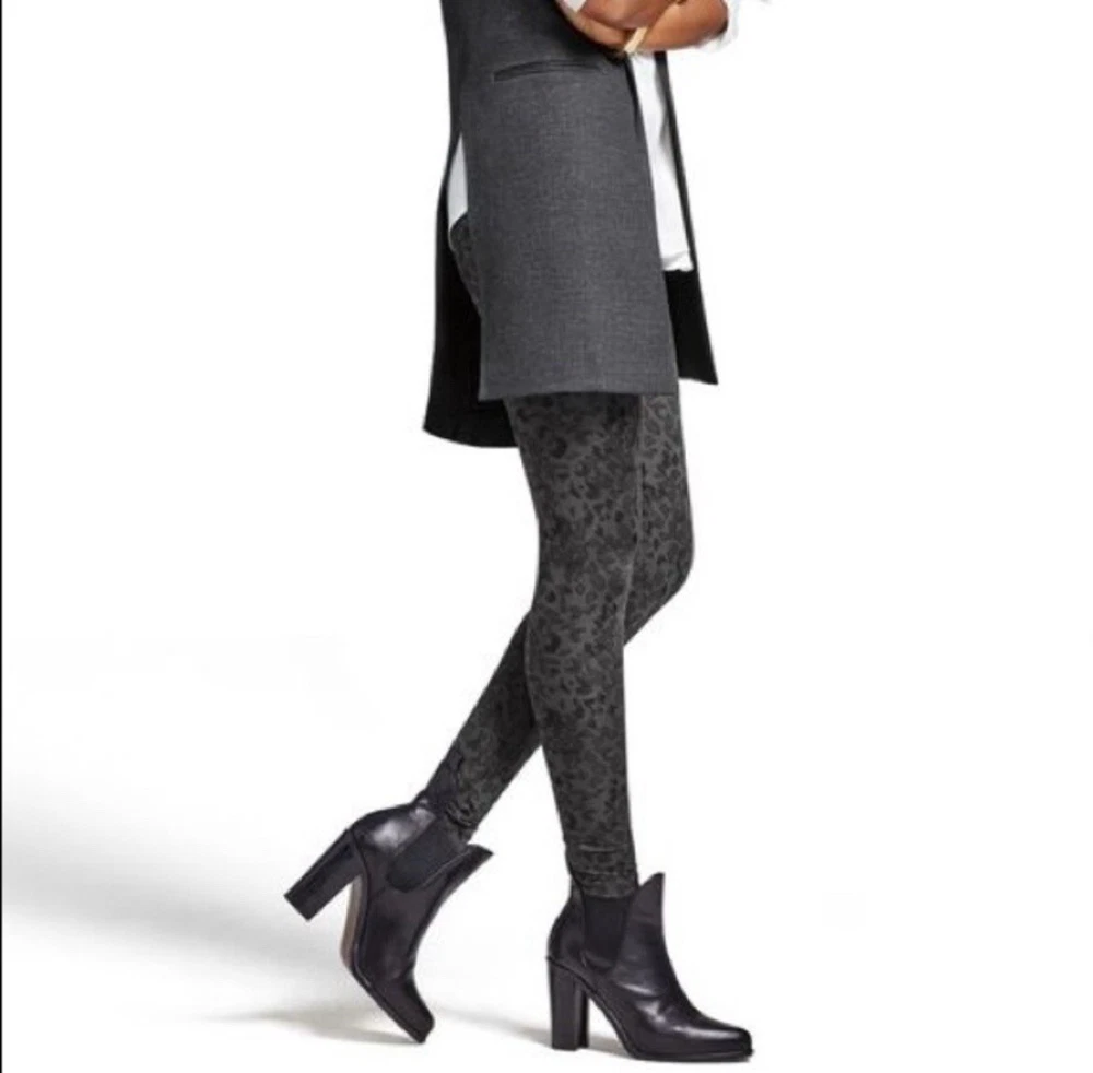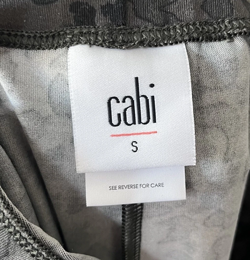 CAbi #3212 Tea Lounge Safari Leggings in a dark gray/black. Size small. Midrise. Elastic waistband. Stretch. Animal print. Skinny leg. Retailed for $99. Pre-owned, excellent condition. Mobwife, luxury, city, contemporary, travel. All measurements are approximate, not exact. Inseam: 29.5” Waist: 13.75” measured flat Rise: 9.25” Leg opening: 4” measured flat