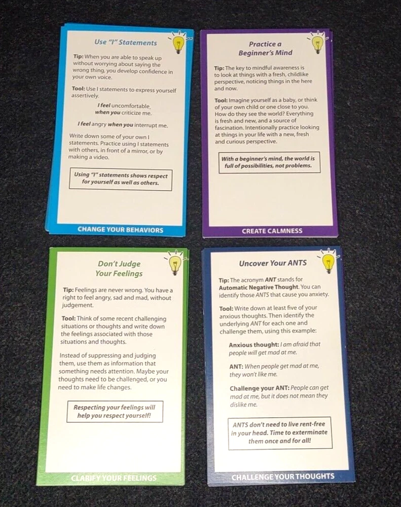 CBT Mindfulness Cards Tools and Tips Anxiety/Stress Solution Coping Skills Deck
