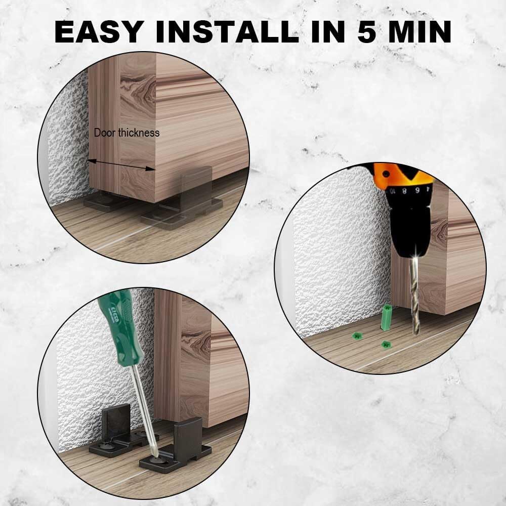 Advantage: Adjust at will. This floor guide can be used for any door thinkness Material:Made of preium plastic,exquisite compression process.Durable and practical Easy to Install:Wall mounted design and don't need drill hole on the floor, easy and convenient to install. Suitable for different places,install without drilling your floor, which can protect your carpet and floor better,Install without drilling your floor, which can protect your carpet and floor better Customer Service:If you meet any problem when you receive or install the item, please let us know firstly, we will try our best to solve the problem for you.