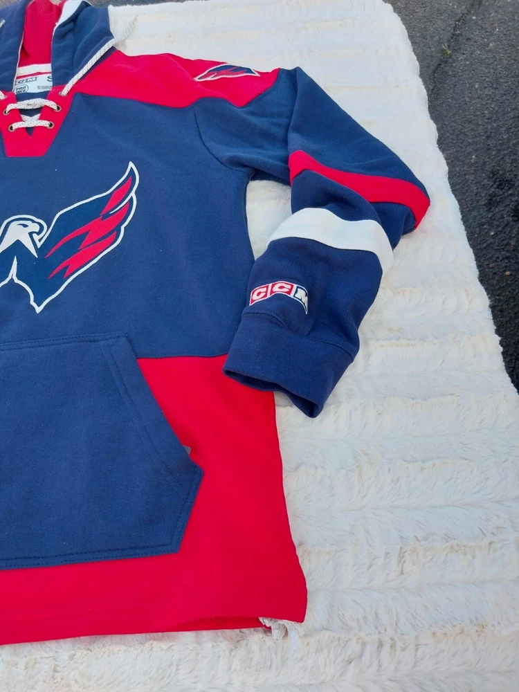 This Jersey is in great condition. Size Small could fit Youth or woman. It is hooded and a real find for a Capital's fan