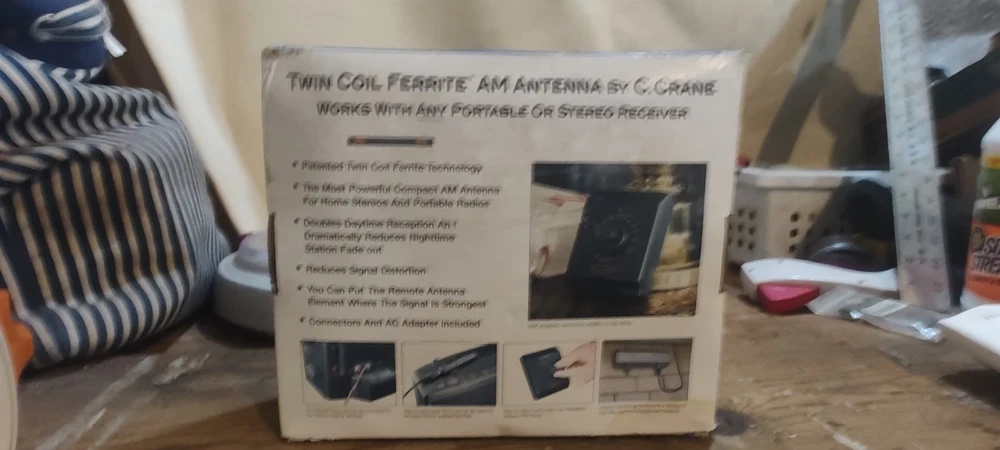 The C.Crane Twin Coil Ferrite AM Antenna Complete Kit is a versatile and high-quality product designed for universal compatibility with base station radios and portable handheld radios. This black plastic antenna, manufactured in 2001, features a built-in amplifier and gain booster for enhanced reception. With a compact size of less than 18 inches and a weight of 1 pound, this multi-directional antenna is a practical and effective solution for improving your radio listening experience. Compatible with Sirius service and designed by C. Crane, this antenna is a reliable choice for optimizing your television viewing as well.please view the photos sells like you see it in the photos nice unit