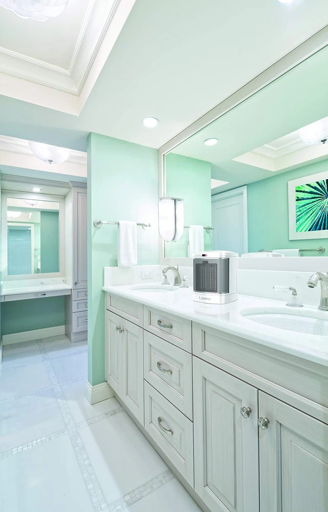 The CD08200 is a small, white, portable ceramic space heater that is specifically designed for home bathroom use. Even though it’s designed for bathroom use, this heater can be used anywhere in the house or apartment to eliminate cold spots and save you from the added expense of turning up the whole-house thermostat on chilly days and nights. The heater comes with an integrated ALCI safety plug (a device that shuts off power to the unit in a fraction of a second in the event of a short). It’s also ETL Listed and comes with Automatic Overheat Protection, a self-regulating ceramic heating element, and an exterior that stays cool to the touch – taking the worry out of using the heater for long periods of time. Powered by an energy efficient 1500-watt ceramic heating element with 3 heat settings, this little heater puts out a lot of heat. Say goodbye to stepping out of the shower during the cold winter mornings and feeling chilly as you dry off as this small & mighty heater heats up the bathroom fast. By the time you get out of shower, the entire bathroom is warm and steamy so you can towel off in spa-like comfort. This heater is easy to use and no assembly is required. Simply take it out of the box and plug it in. There's just one big button on top. Press it once for high heat for one hour. Press it again for high heat. Press it again for low heat and press it a fourth time to turn it off. Attractively designed and at less than 8 in. tall with a tiny 6 in. x 6 in. footprint, it consumes minimal counter top, table, desk or floor space. It can be easily stored when not in use. has been making quality products for over 100 years so you can be confident your heater will last. HEATS UP THE BATHROOM FAST – Say goodbye to stepping out of the shower during the cold winter mornings and feeling chilly as you dry off. This little heater quickly warms up the bathroom. By the time you get out of shower, the entire bathroom is warm and steamy so you can towel off in spa-like comfort. SMALL & MIGHTY – Powered by an energy efficient 1500-watt ceramic heating element with 3 heat settings, this little heater puts out a lot of heat. Attractively designed and at less than 8 in. tall with a tiny 6.25 in. x 6.25 in. footprint, it consumes minimal counter top, table, desk or floor space. It’s also easily stored when not in use. EASY TO USE – No assembly required. Simply take it out of the box and plug it in directly to a wall outlet. There's just one big button on the top. Press it once for high heat for one hour. Press it again for high heat. Press a third time for low heat and a fourth time to turn it off. APPROVED FOR BATHROOM USE – Comes with an integrated ALCI safety plug (a device that shuts off power to the unit in a fraction of a second in the event of a short). It’s ETL Listed and comes with Automatic Overheat Protection, and a self-regulating ceramic heating element and an exterior that stays cool to the touch – taking the worry out of using the heater for long periods of time. TRUSTED FOR GENERATIONS – has been making quality products for over 100 years, so you can be confident your heater will last. Even though it’s designed for bathroom use, this heater can be used anywhere in the house or apartment to eliminate cold spots and save you from the added expense of turning up the whole house thermostat on chilly days and nights.