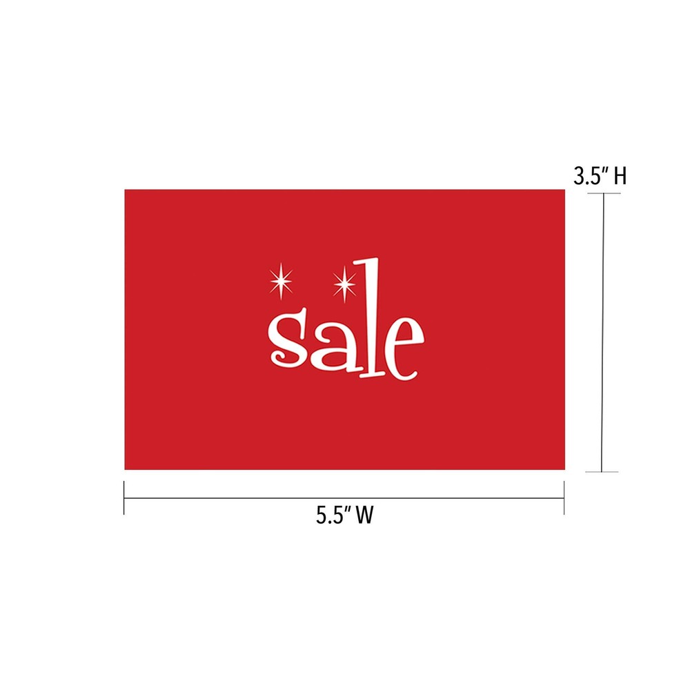 Add a sign that pops, helping to increase sales. “Sale”, is a bright red and white with stars card stock display card, measuring 3 ½”H x 5 ½”W. sided, sturdy enough to stand alone in a clip stand or slides right into an acrylic sign holder or metal card frame stand. 3 ½”H x 5 ½”W Sided, Easy to Read Red with White Script Sturdy Card Stock Made in the USA