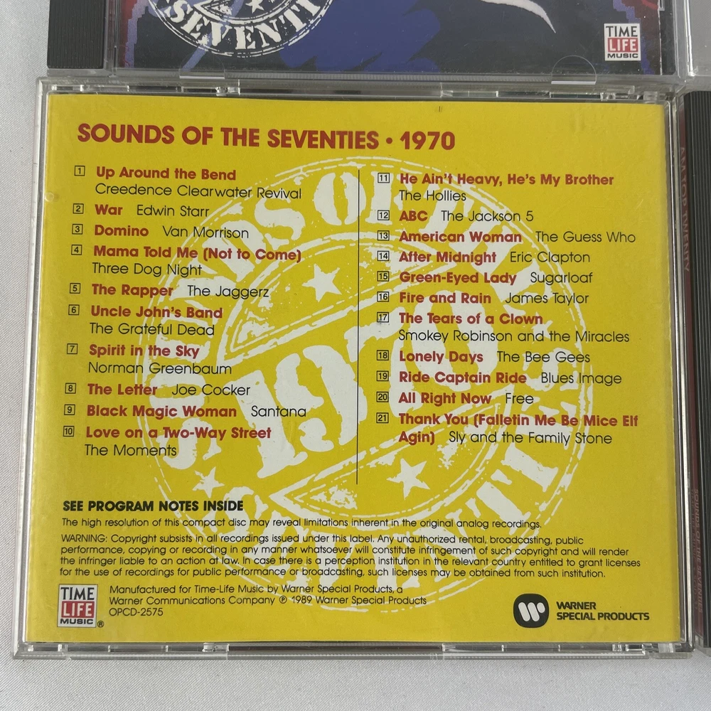 This CD lot features a collection of rock music from the 1970s, with a focus on guitar power and rock genres. The CDs come in a standard jewel case and have been graded as Very Good Plus (VG+), with some signs of wear and tear. The inlay and case conditions are also Very Good Plus (VG+), and the unit quantity is 5. The record label is Sound and the release title is Sounds of the Seventies. This CD lot is perfect for any music collector or fan of classic rock. Don't miss out on the opportunity to add this rare collection to your library.