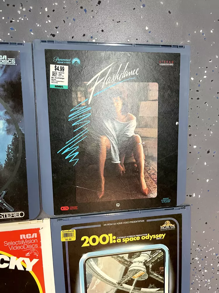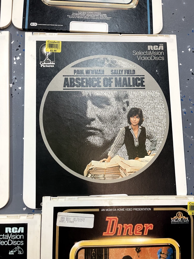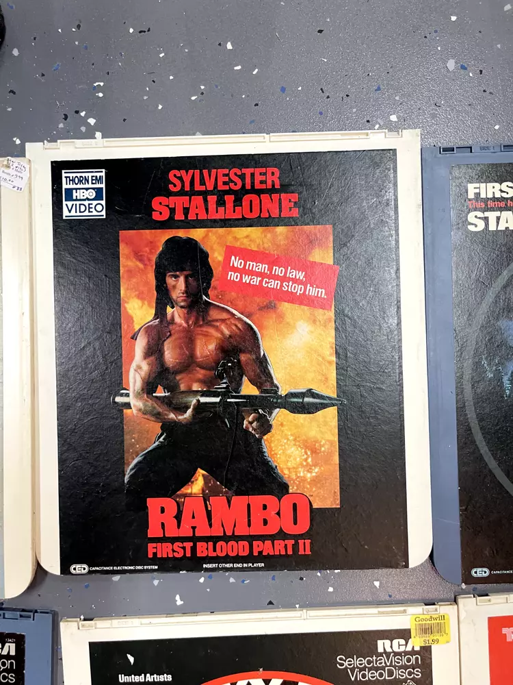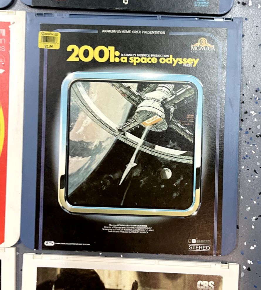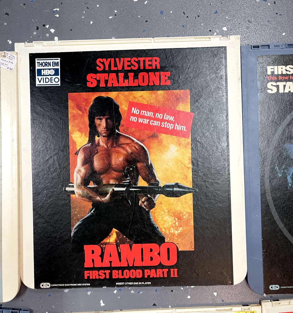 The product is a CED Selectavision Video Disc featuring a selection of SciFi, Action, and Drama movies such as Star Trek Empire strikes back, Rocky and Rambo. It allows you to choose your own movie from a variety of genres including Western, Musical, and Comedy, produced by Walt Disney Studios.