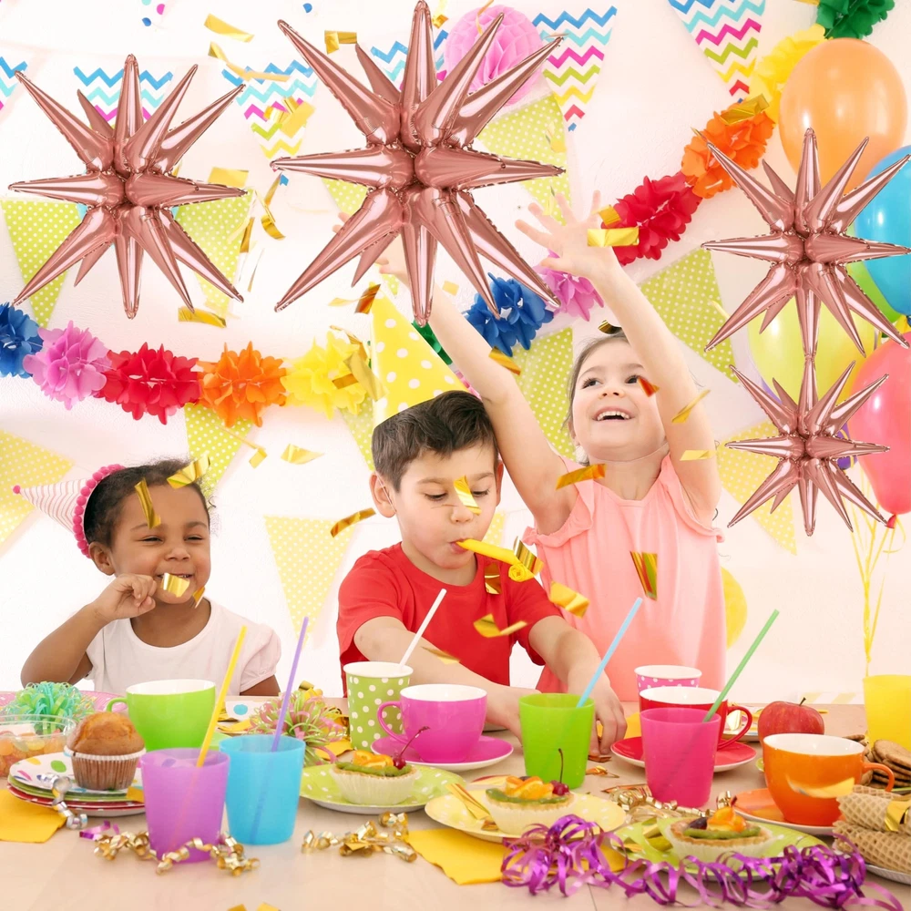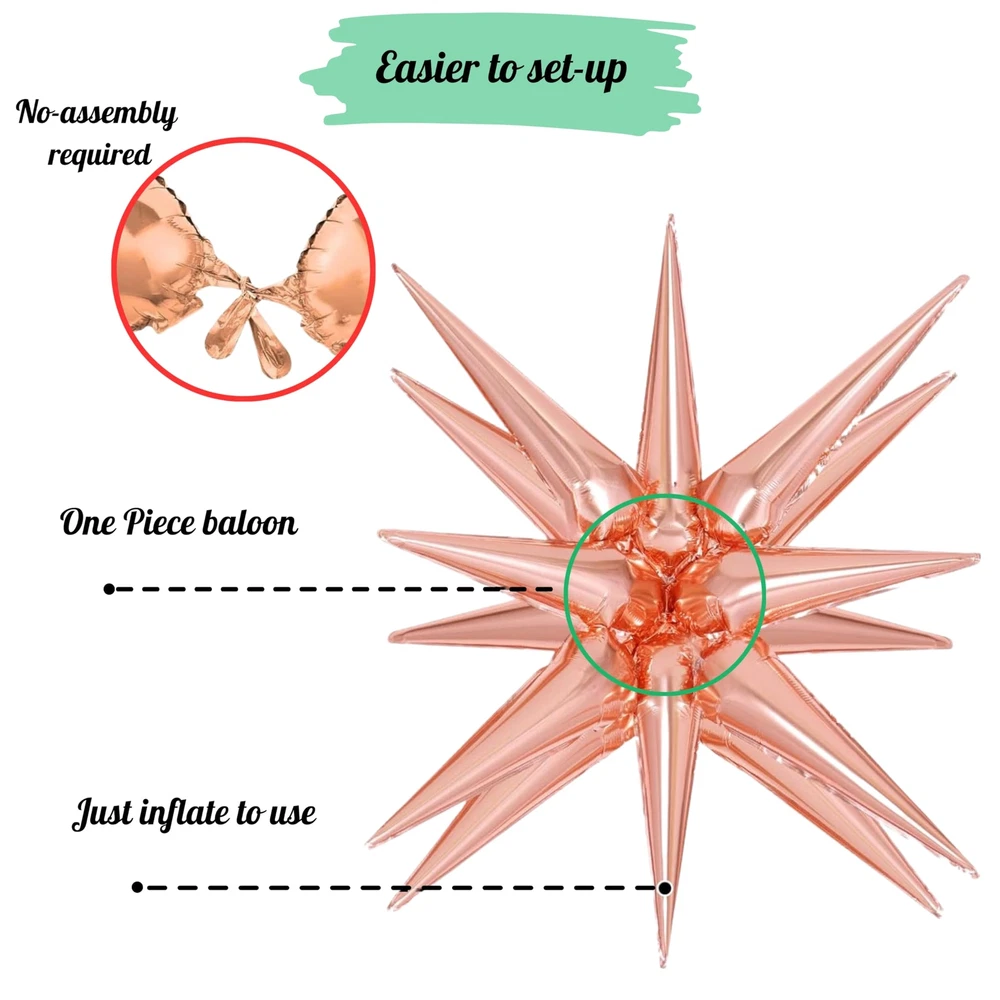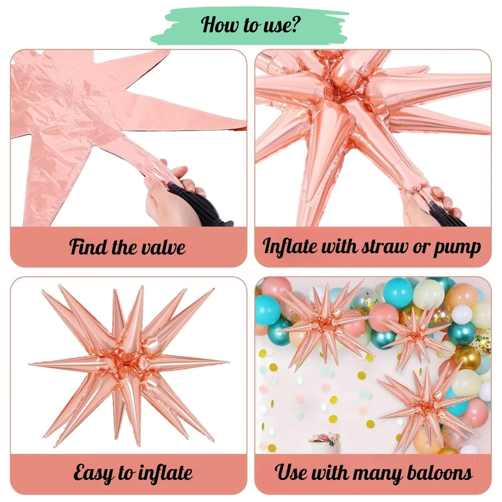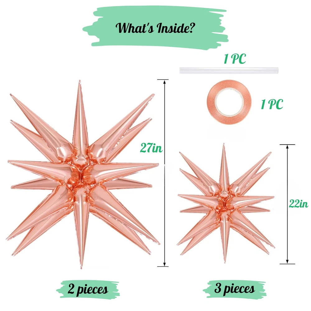 CELEBRIO Make it special - 5 Pcs Rose Gold Star Balloons - 3 Pcs 22 Inch & 2 Pcs 27 Inch Foil Party Balloons - Perfect for Birthdays, Weddings, Baby Shower and Party Decorations (Rose Gold) Add a luxurious touch to your celebration with Celebrio Rose Gold Star Balloons! These stunning, durable foil balloons are perfect for various events such as birthdays, weddings, anniversaries, and baby showers. Made from high-quality aluminum foil, these balloons are designed to hold air or helium for days, providing long-lasting decoration. Each set includes 3 balloons in 22 inches and 2 larger balloons in 27 inches, allowing you to create an eye-catching display that will leave a lasting impression. The balloons are easy to inflate and feature a self-sealing design, which eliminates the need to tie knots or worry about leaks. Use them to decorate balloon arches, hang them from ceilings, or create a unique backdrop for photos. Their versatility ensures they’ll be a stunning addition to any indoor or outdoor celebration. Add a touch of rose gold glamour to your event with Celebrio Star Balloons! What's Included: 3 Rose Gold Star Balloons (22 Inches) 2 Rose Gold Star Balloons (27 Inches) Easy inflation and self-sealing Bring sophistication and shine to your party with Celebrio Rose Gold Star Balloons, the ideal decor for any special occasion! Premium Quality Foil Material: These rose gold star balloons are made from durable and shiny aluminum foil, ensuring they stay inflated for days. Can be used for multiple occasions. Variety in Sizes: Each set includes 3 rose gold star balloons measuring 22 inches and 2 larger star balloons measuring 27 inches, providing a beautiful and dynamic decoration for your event. Easy Inflation and Sealing: Our star balloons are self-sealing, eliminating the need for tying knots. Simply inflate with air or helium, and the automatic sealing design ensures no leaks. Perfect for All Occasions: Whether it's a birthday, wedding, baby shower, or anniversary, these eye-catching rose gold star balloons will make your event unforgettable. Wide Application: Hang them from the ceiling, incorporate them into a balloon arch, or use them as a backdrop for photos. The rose gold star balloons will add a touch of sparkle and elegance to any party setting. Shipping from the USA All of our products are shipped from the USA, ensuring quick delivery to your destination. Payment We offer the following payment methods: PayPal, credit card, bank transfer, and eBay's secure payment system. Free Shipping & Free Returns Shipping within the USA is FREE. Additionally, any return is absolutely free for you. Risk-Free Purchase You have the option to return an item within 30 days without any justification. We cover the return shipping costs! Fast Shipping We ship immediately upon receipt of payment. Generally, the package is delivered within 2-3 days in the USA. If it takes longer, we will contact you. Quality and Costs Made in Europe, USA, China No customs fees or additional charges Total satisfaction guarantee Invoice with declared VAT available upon request in .pdf format Feedback Your feedback is very important to us. After you pay for your purchase, you will automatically receive positive feedback from us.