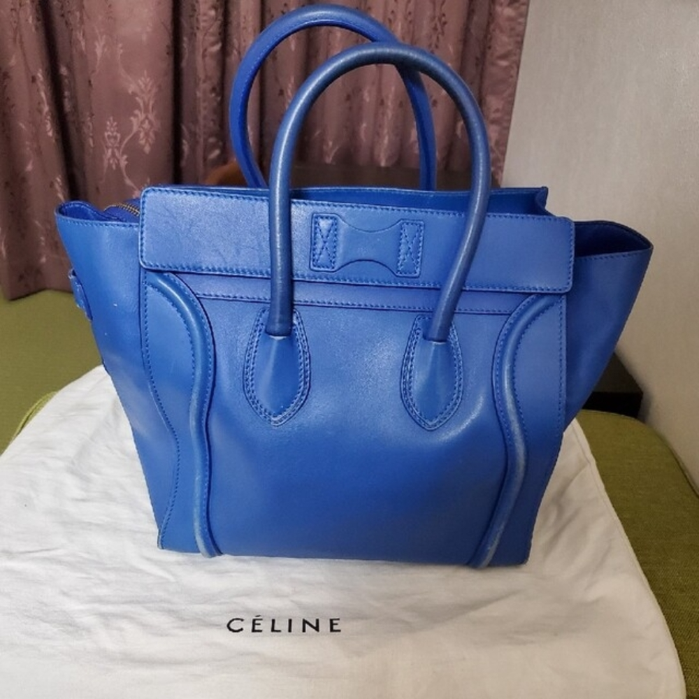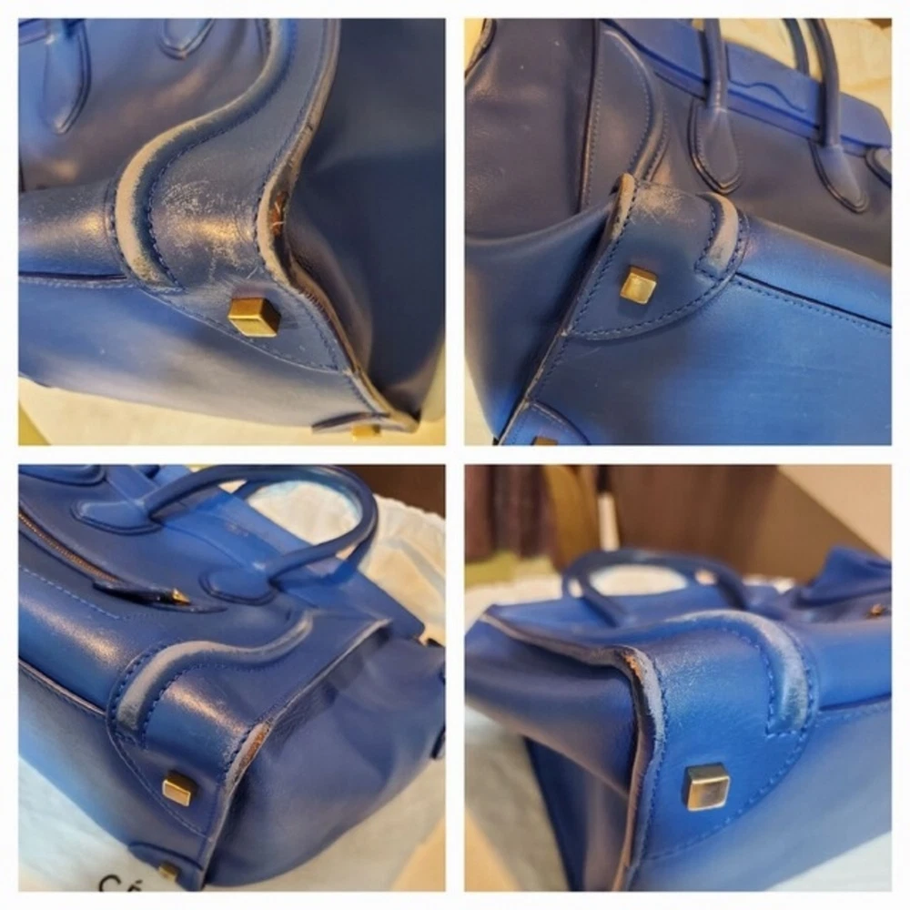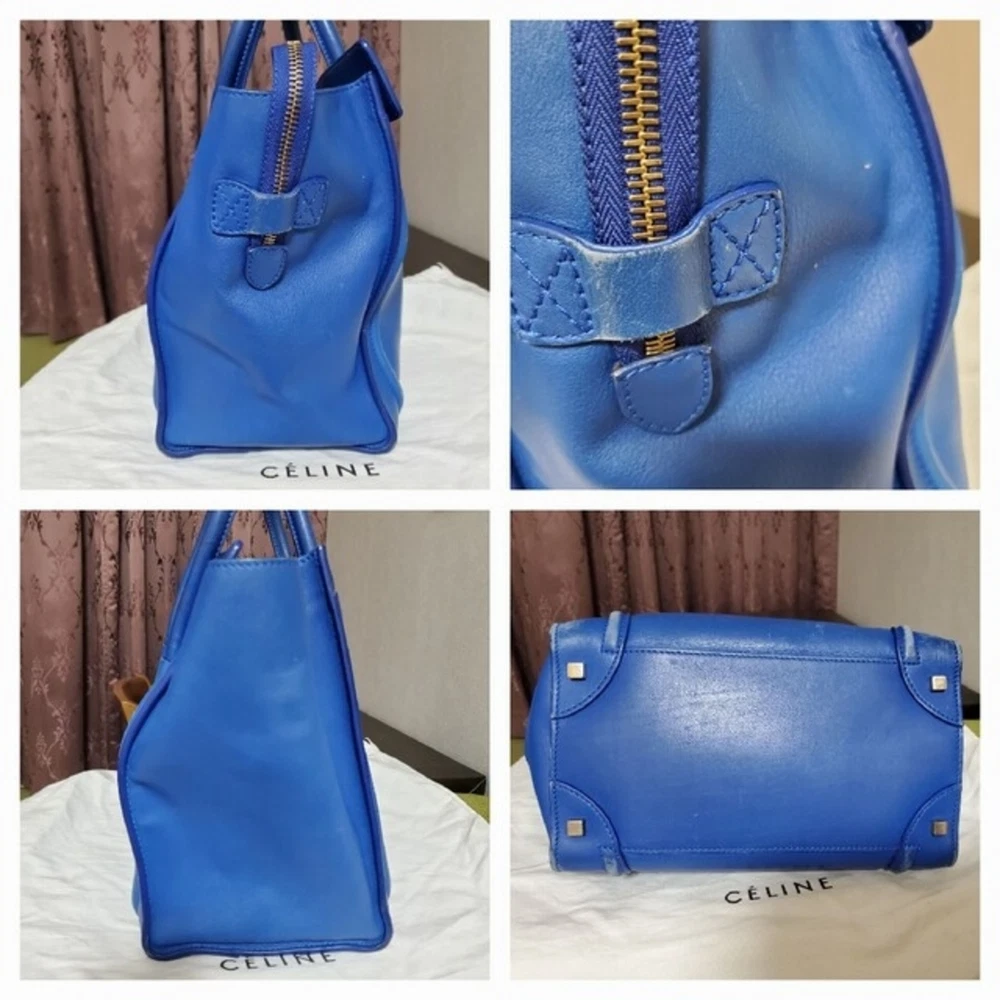 Description Authentic CELINE Luggage handbag. This iconic bag features a structured silhouette in a stylish blue color. Known for its timeless design, the Luggage bag remains a popular choice for everyday use. Spacious and practical, it is suitable for daily activities, work, or casual outings. Details Brand: CELINE Model: Luggage Color: Blue Material: Leather Style: Handbag / Tote Bag Features • Iconic Luggage design • Spacious interior • Durable leather construction • Suitable for daily use Size (Approx.) Width: 31 cm (12.2 in) Height: 31 cm (12.2 in) Depth: 18 cm (7.1 in) Please allow slight measurement differences. Condition Pre-owned condition. • Visible signs of use • Scratches and stains • General wear throughout Please review all photos carefully before purchasing. Accessories None Shipping We will ship by DHL or FedEx or Japan Post International Buyers - Please Note: Import duties and taxes are not included in the item price or shipping cost. Please check with your country?s customs office to determine these additional costs prior to bidding or buying. Additionally, if the delivery address is in a remote area, there may be additional charges by FedEx or DHL. If such charges occur, you may be asked to pay an additional $15 to $20.