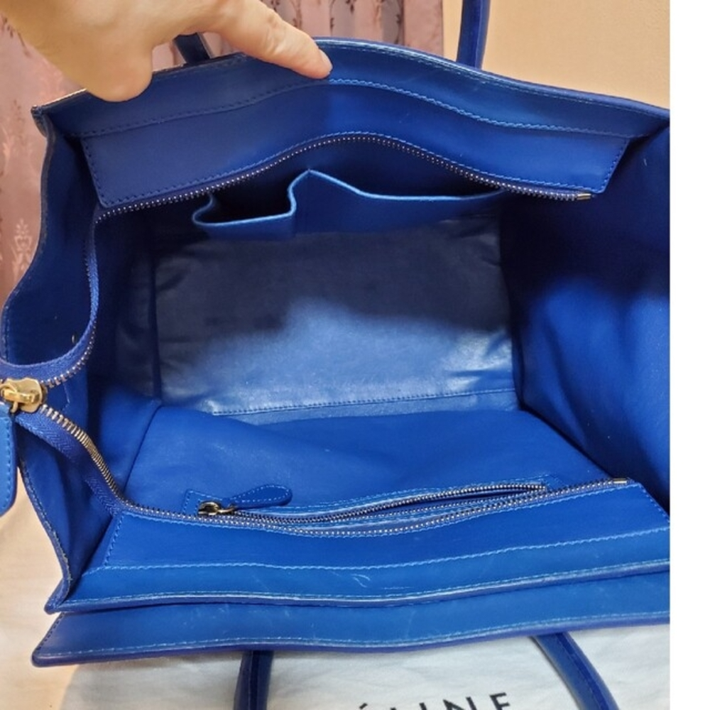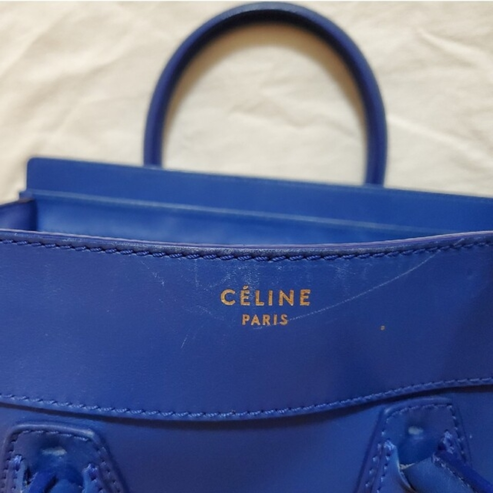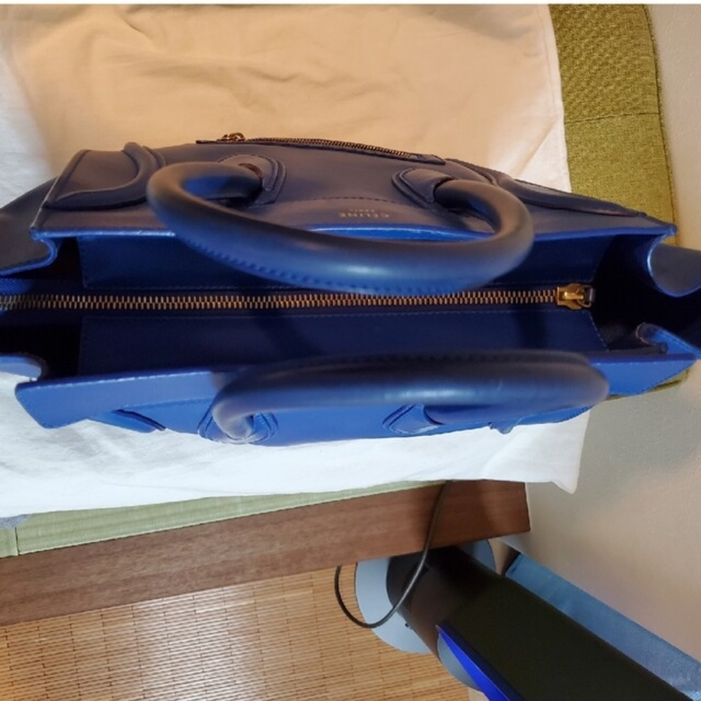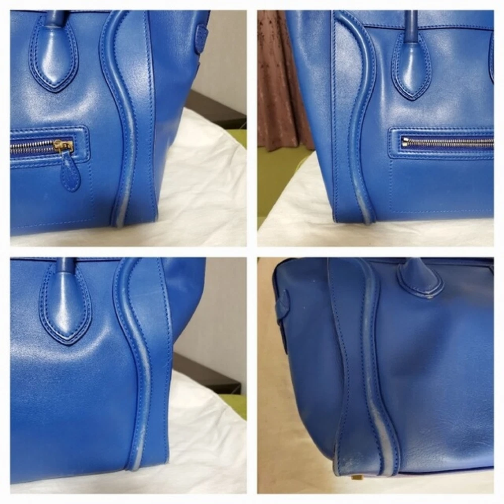 Description Authentic CELINE Luggage handbag. This iconic bag features a structured silhouette in a stylish blue color. Known for its timeless design, the Luggage bag remains a popular choice for everyday use. Spacious and practical, it is suitable for daily activities, work, or casual outings. Details Brand: CELINE Model: Luggage Color: Blue Material: Leather Style: Handbag / Tote Bag Features • Iconic Luggage design • Spacious interior • Durable leather construction • Suitable for daily use Size (Approx.) Width: 31 cm (12.2 in) Height: 31 cm (12.2 in) Depth: 18 cm (7.1 in) Please allow slight measurement differences. Condition Pre-owned condition. • Visible signs of use • Scratches and stains • General wear throughout Please review all photos carefully before purchasing. Accessories None Shipping We will ship by DHL or FedEx or Japan Post International Buyers - Please Note: Import duties and taxes are not included in the item price or shipping cost. Please check with your country?s customs office to determine these additional costs prior to bidding or buying. Additionally, if the delivery address is in a remote area, there may be additional charges by FedEx or DHL. If such charges occur, you may be asked to pay an additional $15 to $20.