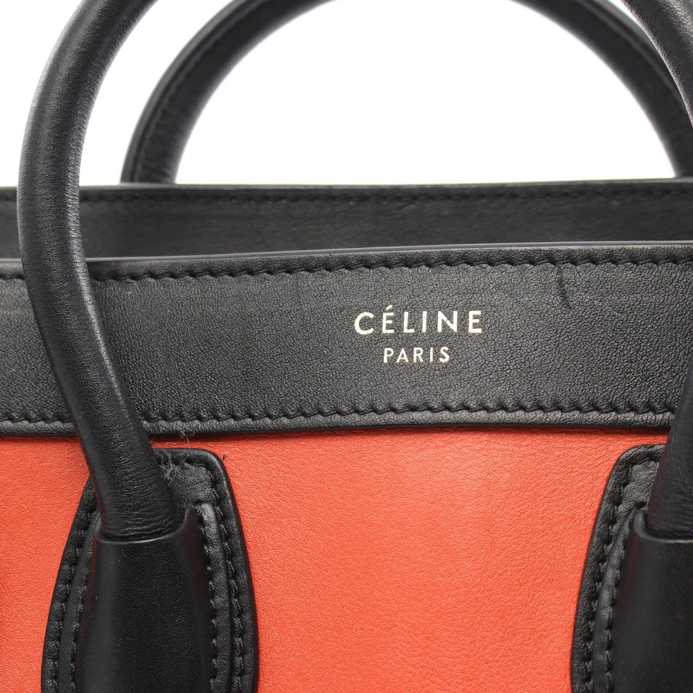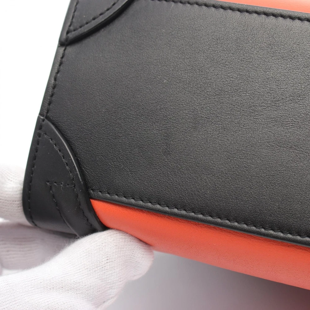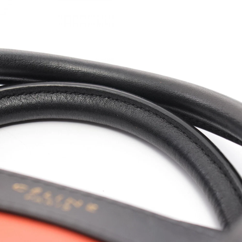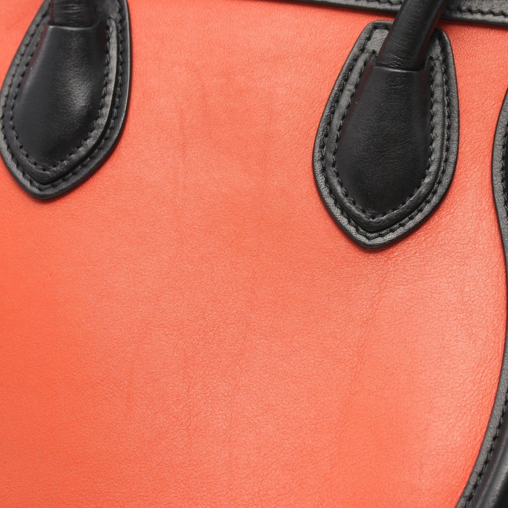 This Celine Luggage Nano Shopper is a stunning leather handbag with the perfect size—compact yet roomy enough for essentials. The orange, black, and beige tones give it a chic, versatile look, and the two-way design makes it easy to carry. The leather feels luxurious, and the included shoulder strap adds convenience. A great pre-loved find for any fashion lover!