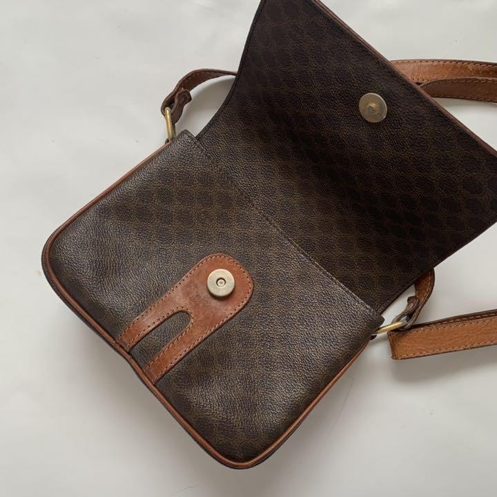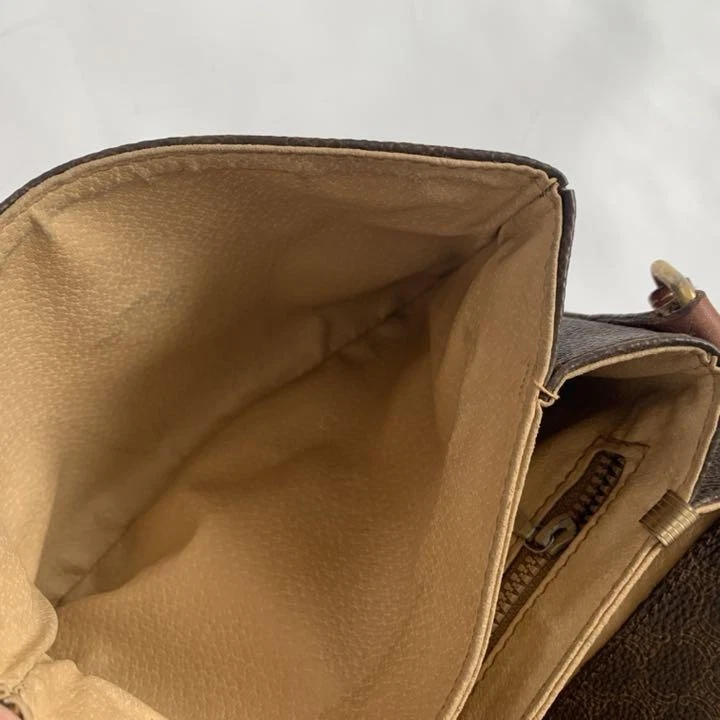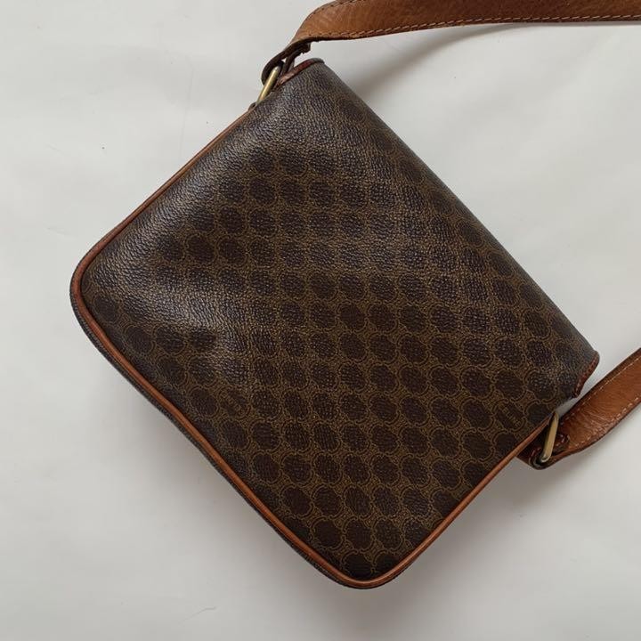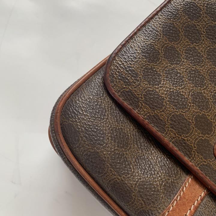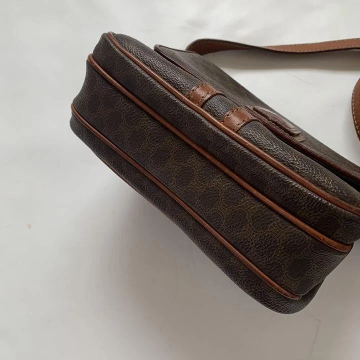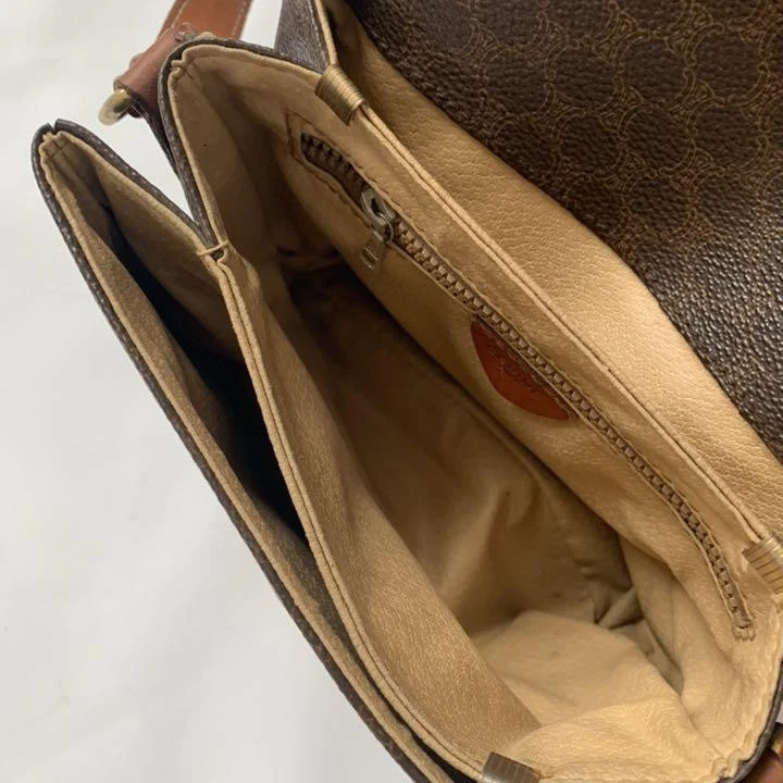 CELINE Macadam Pattern Shoulder Bag Retro Brown leather Cross body logo Women