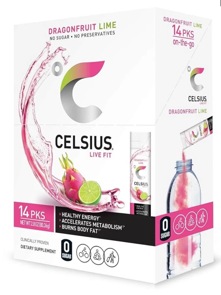 Flavor:Dragon fruit and cranbery limeBrand:CelsiusFeatures:All Natural, Green tea with EGCG, Ginger, & Guarana seedFormulation:PowderType:DrinkNumber of Pills:28 TubesIngredients:Dragon fruit lime and Cranberry limeMain Purpose:Immune System SupportMPN:N/AWhen to Take:Before WorkoutSupply:N/AActive Ingredients:Immune System Support
