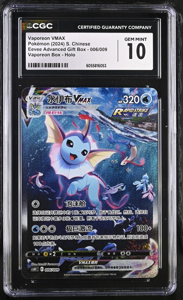 CGC 10 GEM MINT Chinese Flareon Vaporeon Jolteon VMAX Alternate Art Holo Pokémon. The pictures for this listing are stock images. You will receive cards very similar to the ones pictured but certification numbers will be different. Grades will be identical. Please reach out with any questions and we would be happy to assist you. Returns are not accepted. Purchase of this item signifies agreement that Grade, Actual Condition and expected standards all match. Please see CGC website for more info. Shipping info: All graded cards are shipped securely in bubble mailer and cardboard box; regardless of price. Please reach out with any concerns before contacting ebay and we'd be happy to assist you. Please note that due to inventory accuracy, purchases will not be cancelled before or after shipping. Please reach out with any questions before purchase and we would be happy to assist you.