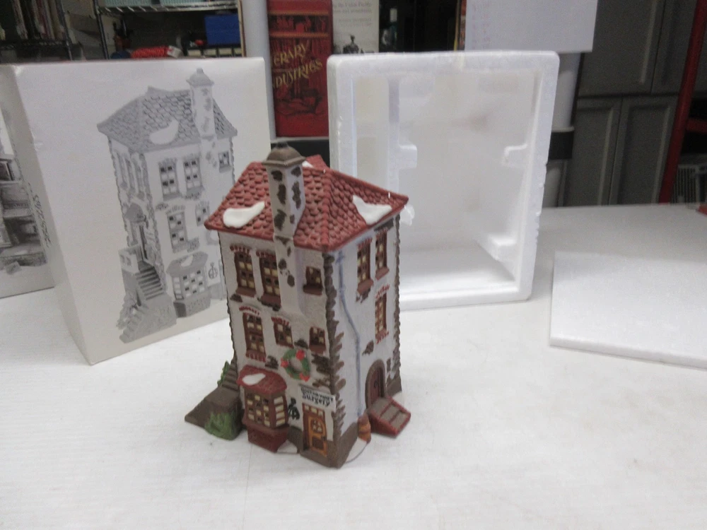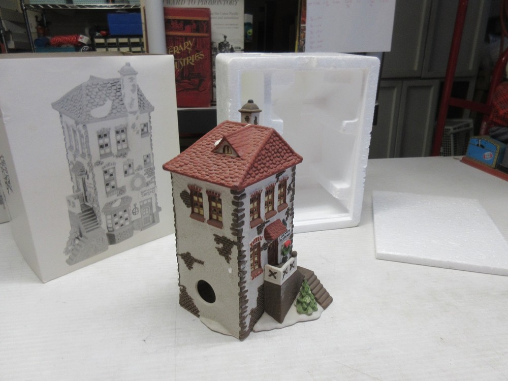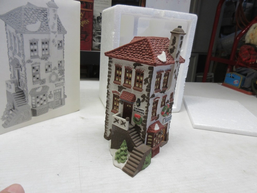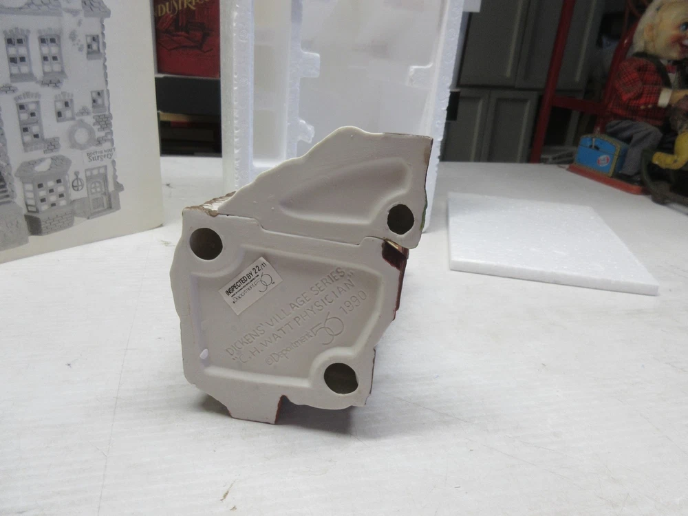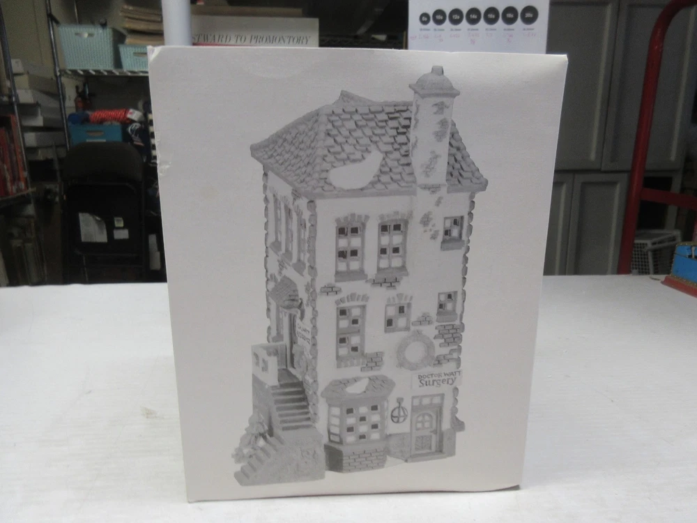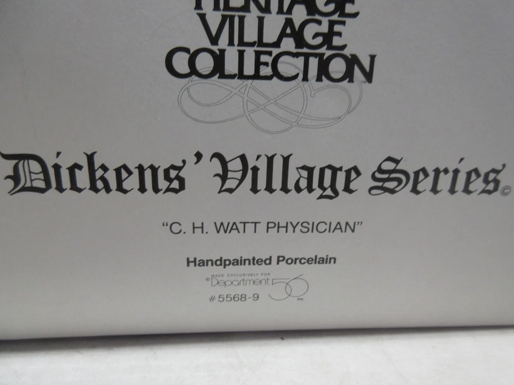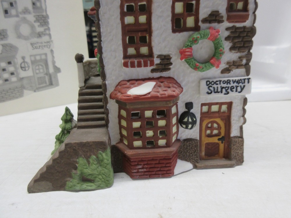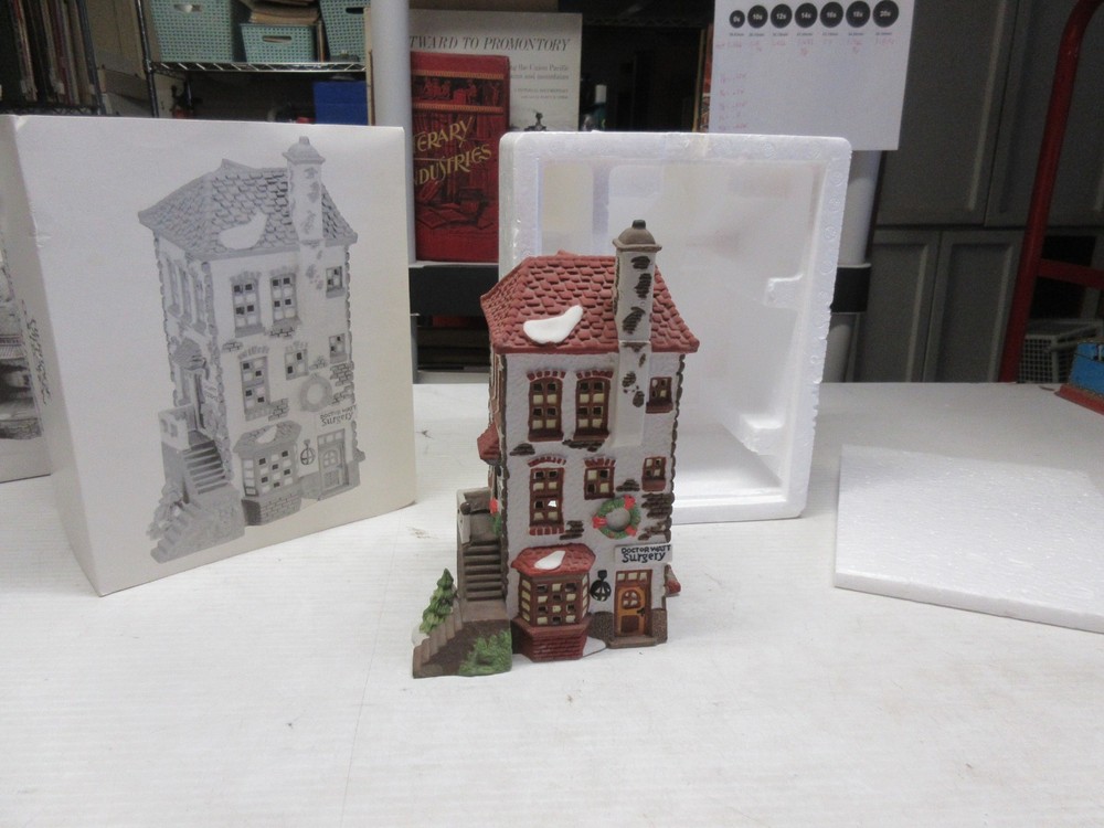 The C.H. Watt Physician - Department 56 Heritage Village Collection is a medium-sized Christmas village piece from 1990. This asymmetrical Victorian-style building is made of porcelain and ceramic, featuring a multicolor painted finish. Suitable for windows, floors, or furniture, this collectible comes boxed and is part of the Heritage Village collection by Department 56. With a theme of transportation and seasonal scenes, this one-piece item stands 14 inches tall and weighs 2 pounds, making it a charming addition to any room or shop during the holiday season. 1669