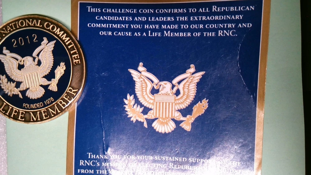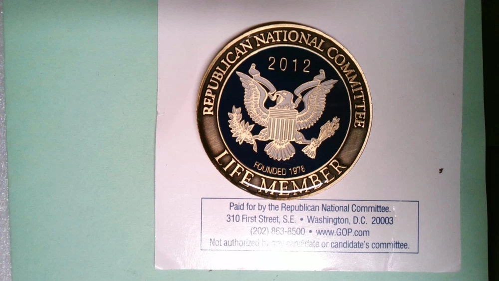 CHALLENGE COIN REPUBLICAN NATIONAL COMMITTEE LIFE MEMBER 2012 PRESIDENTIAL ELECT