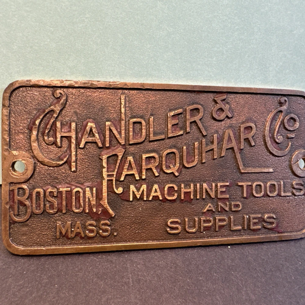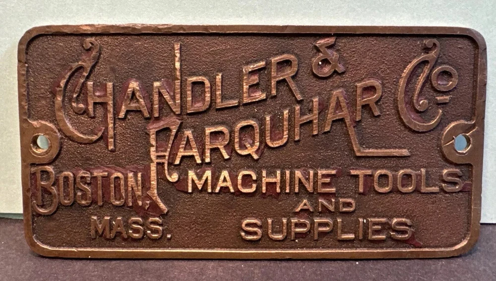 CHANDLER & FARQUHAR CO BRASS NAME PLATE Machine Tools BOSTON Antique