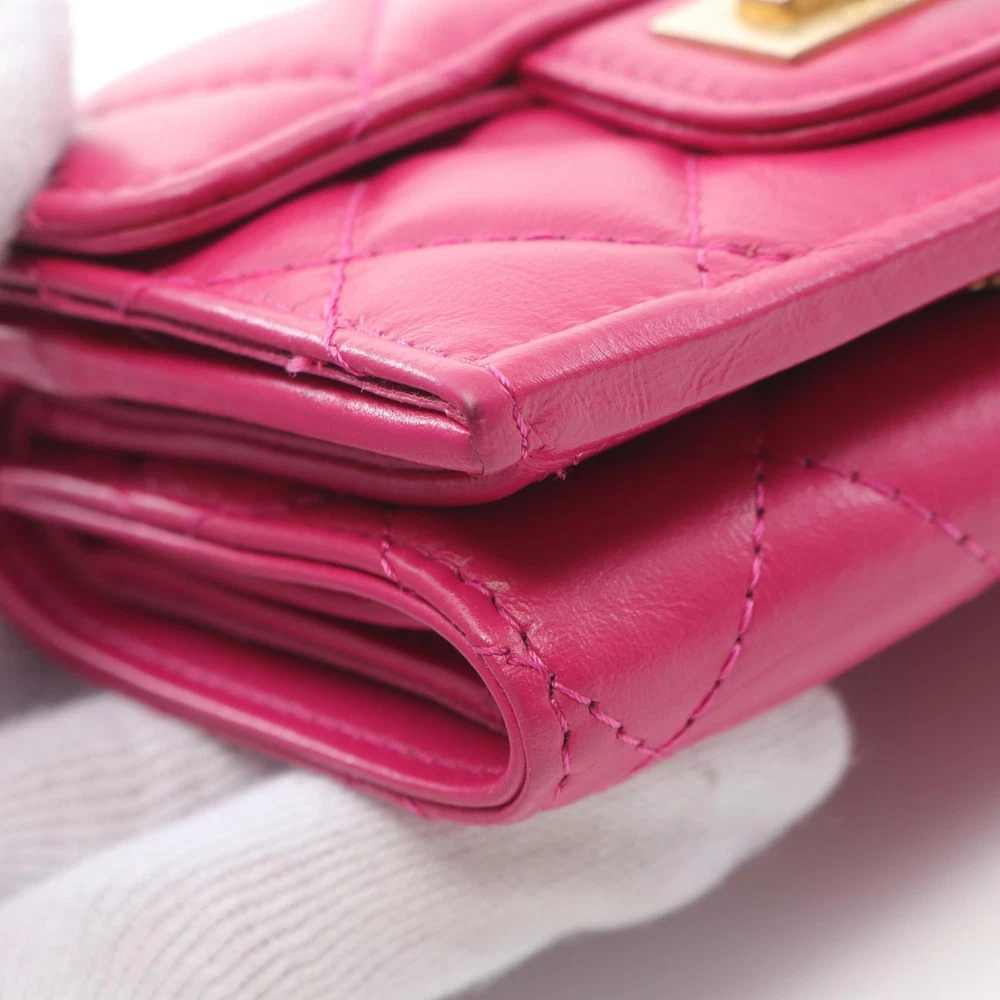 This CHANEL 2.55 wallet is absolutely stunning! The soft lambskin leather feels luxurious, and the pink shade is so elegant. The tri-fold design is spacious yet compact, perfect for everyday use. The gold hardware adds a classic touch, and the condition is great for a pre-loved piece. Love how it fits all my essentials without being bulky—definitely a must-have for any CHANEL lover!