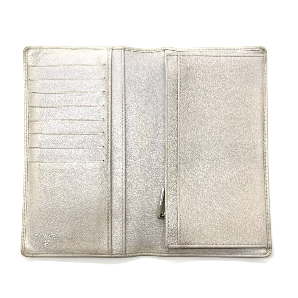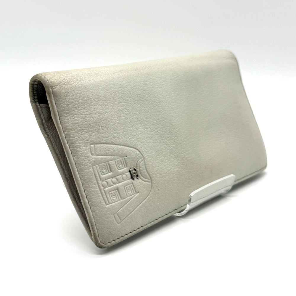 CHANEL Authentic Coco Mark Leather Long Wallet Beige with Coco Button
