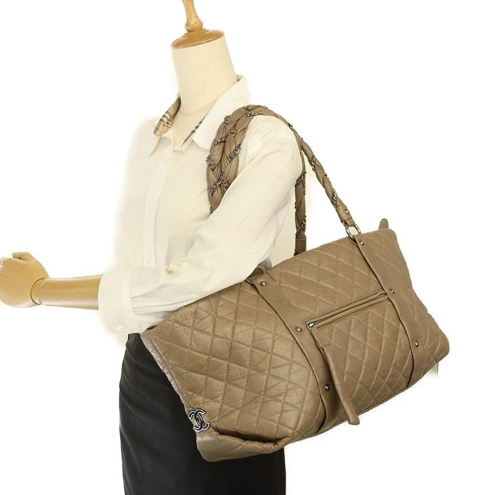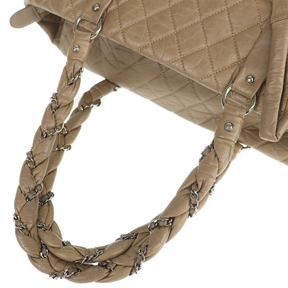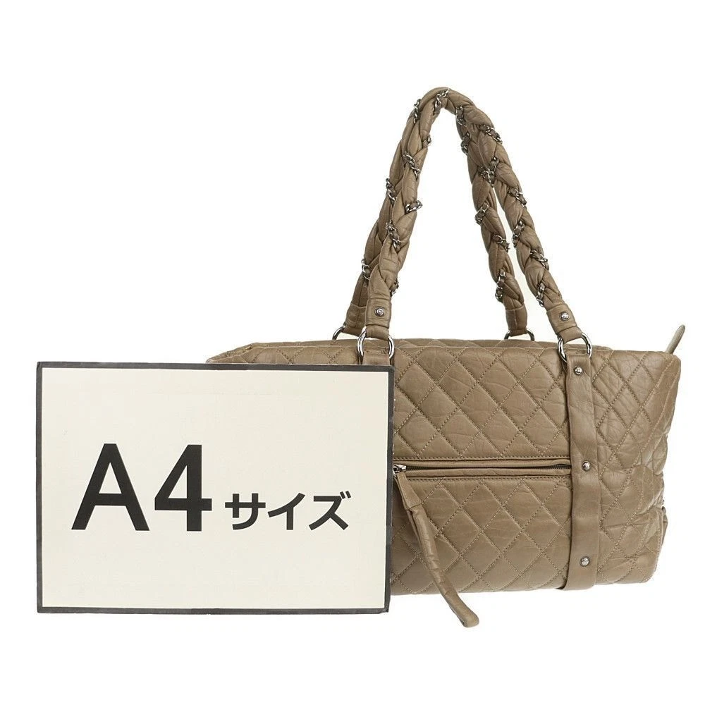 CHANEL Beige Silver Chain Tote Bag Luxury Line