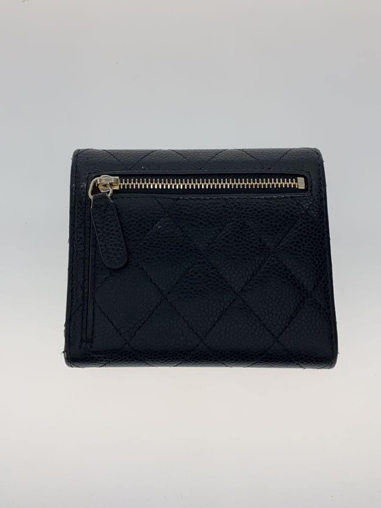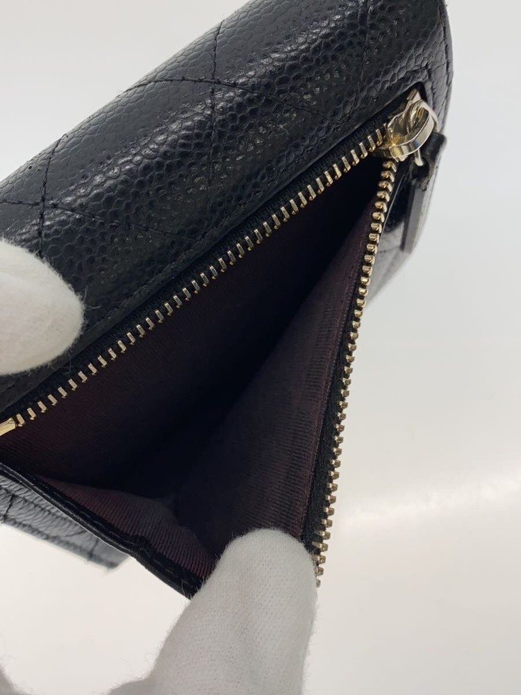 CHANEL Bi-Fold Compact Wallet Matelassé Caviar Leather CC Black F/S Pre-Loved