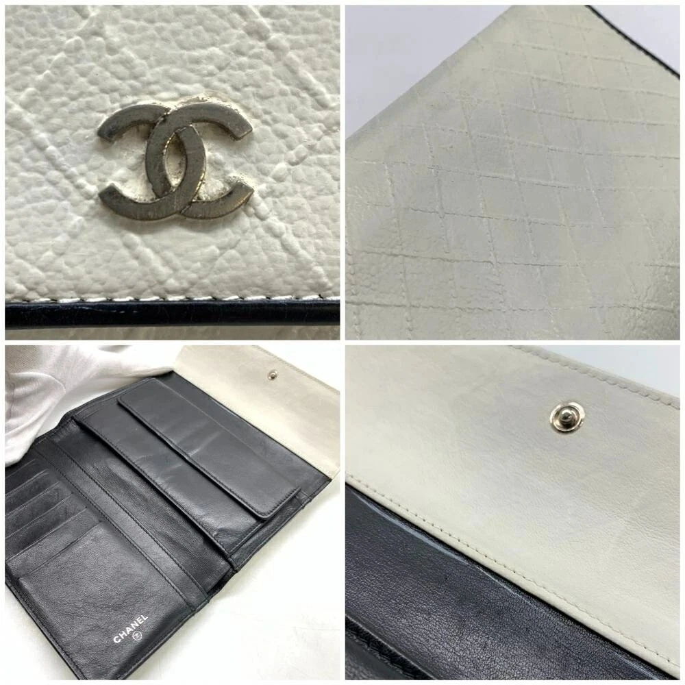 CHANEL Bicolore Long Wallet White Leather CoCo Mark