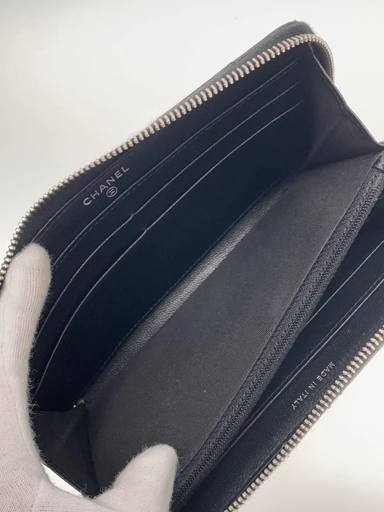 Description CHANEL Zip Around Long Wallet Matelassé Chevron V‑Stitch Coco Mark Caviar Leather CC Black Leather F/S Pre-Loved - Condition There is no noticeable damage, and it can still be used. Please check the photos. - Size and Specifications Actual Size (cm): Height 10.5 Width 19 Thickness 2 Other Sizes / Additional Details - Thank you very much for your interest. - Please note that this is a pre-owned (used) product. - As it is also available for sale in stores, the condition may change slightly over time. - There may be minor damage or dirt not visible in the photos, and some accessories may be missing . - We manage our inventory carefully, but in rare cases, the product may sell out . - Depending on your monitor or device, the color may appear slightly different from the actual product. - If you have any questions or concerns , please feel free to contact us anytime. Shipping Information FREE SHIPPING - The product will be shipped from Japan . - Shipping Method: Japan Post or DHL or Fedex - Delivery Period: Usually takes 2–3 weeks (Delivery may be delayed due to global events, weather conditions, customs processes, or other unforeseen circumstances. ) Important Notes - Import duties, taxes, and charges are Not included in the product price or FREE SHIPPING cost. - These charges are the buyer's responsibility . - Please check with your country's customs office to determine what these additional costs will be prior to bidding or buying.
