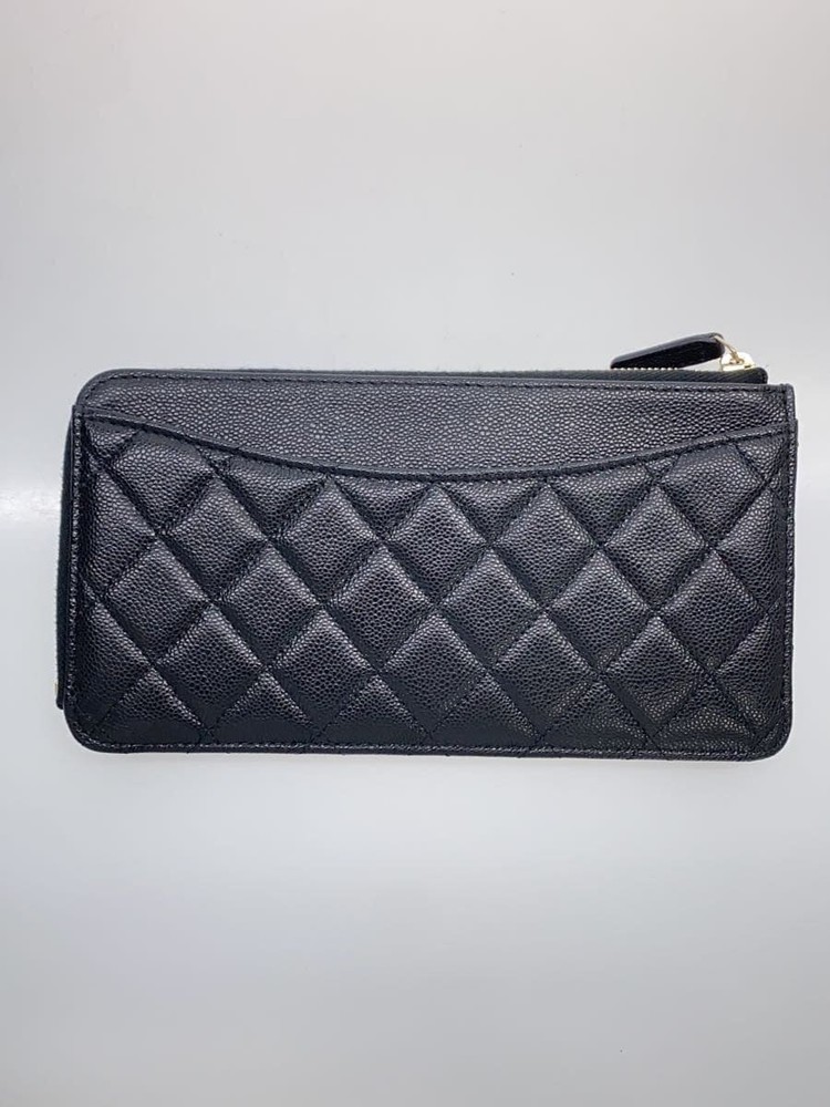 CHANEL Caviar Leather Long Flap Wallet CC Black Pre-Owned A50096