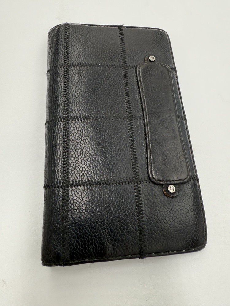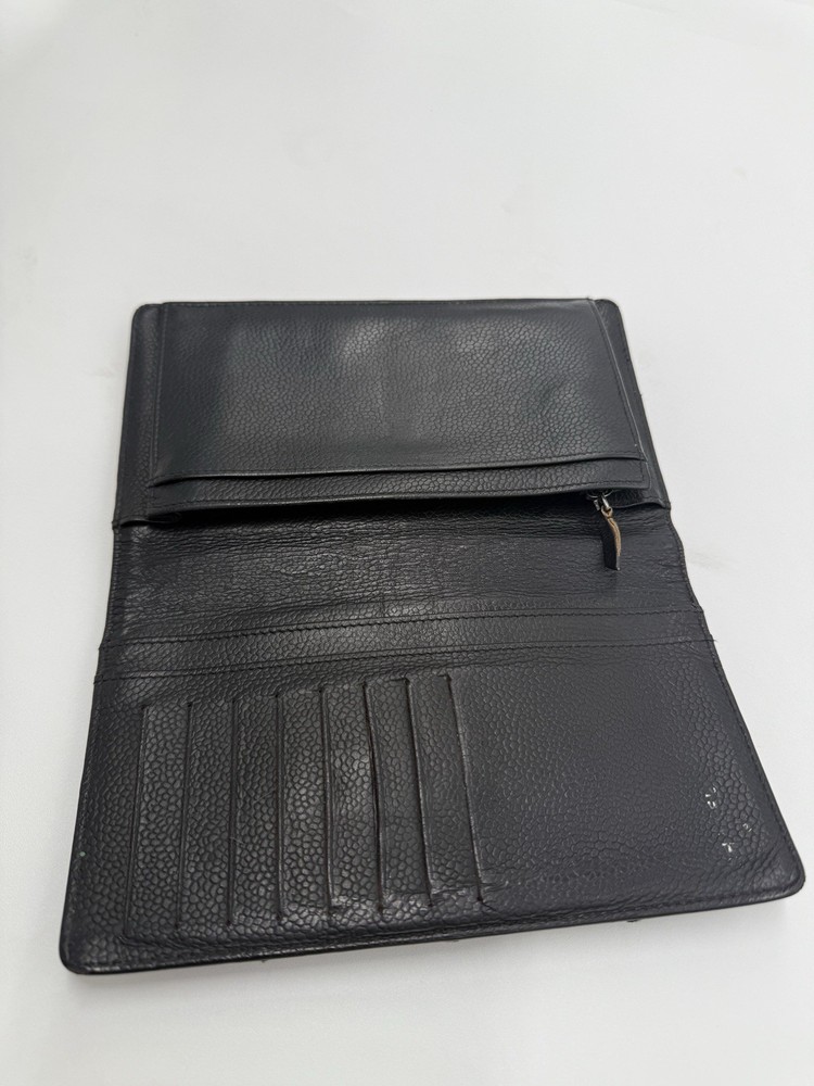Black Leather Bifold Long Wallet made of high-quality calf skin leather in classic black color. Perfect for organizing your essentials with a touch of Chanel luxury. Good preloved condition.