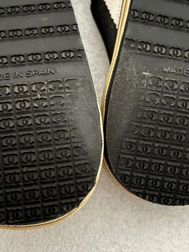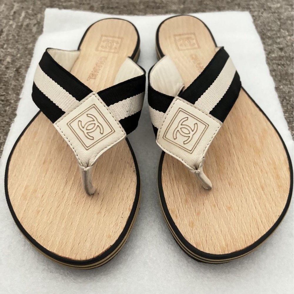 Absolutely love these CHANEL thong sandals! The black and white striped strap with the iconic CC logo is so chic and timeless. The wood sole adds a unique touch, making them both stylish and comfortable. Even though they're pre-owned, the condition is fantastic—just minor signs of wear that don’t take away from their elegance. Shipping was fast and secure, and knowing they’re 100% authentic gives me total peace of mind. Perfect for summer outings or adding a luxe touch to any casual look. Highly recommend!