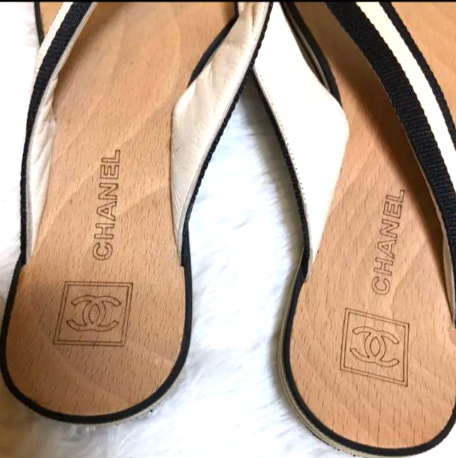 These CHANEL thong sandals are a chic summer staple! The black and white striped CC logo strap adds a timeless, elegant touch, while the wood sole keeps them comfortable and stylish. Even though they’re pre-owned, they’re in great condition with only minor signs of wear—totally worth it for authentic Chanel at a better price. Shipping was fast and reliable, with tracking included. Love how versatile they are, pairing perfectly with everything from jeans to dresses. Highly recommend for anyone looking for luxury without the full retail price!