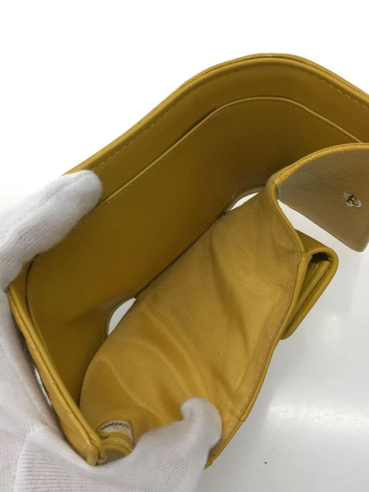 Description CHANEL Tri-Fold Compact Wallet Boy Chanel Chevron Quilted V‑Stitch Caviar Leather CC Yellow Leather F/S Pre-Loved - Condition There are stains. Please check the photos. - Size and Specifications Actual Size (cm): Height 9.5 Width 10.5 Thickness 3 Other Sizes / Additional Details - Thank you very much for your interest. - Please note that this is a pre-owned (used) product. - As it is also available for sale in stores, the condition may change slightly over time. - There may be minor damage or dirt not visible in the photos, and some accessories may be missing . - We manage our inventory carefully, but in rare cases, the product may sell out . - Depending on your monitor or device, the color may appear slightly different from the actual product. - If you have any questions or concerns , please feel free to contact us anytime. Shipping Information FREE SHIPPING - The product will be shipped from Japan . - Shipping Method: Japan Post or DHL or Fedex - Delivery Period: Usually takes 2–3 weeks (Delivery may be delayed due to global events, weather conditions, customs processes, or other unforeseen circumstances. ) Important Notes - Import duties, taxes, and charges are Not included in the product price or FREE SHIPPING cost. - These charges are the buyer's responsibility . - Please check with your country's customs office to determine what these additional costs will be prior to bidding or buying.