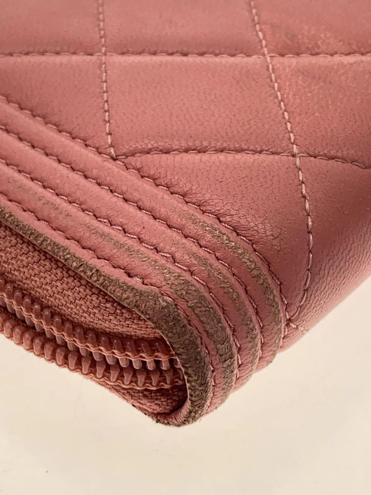 Description CHANEL Zip Around Long Wallet Boy Chanel Diamond Quilted Matelassé CC Pink Leather F/S Pre-Loved - Condition There are corner scuffs and darkness. Please check the photos. - Size and Specifications Actual Size (cm): Height 10 Width 19 Thickness 2 Other Sizes / Additional Details - Thank you very much for your interest. - Please note that this is a pre-owned (used) product. - As it is also available for sale in stores, the condition may change slightly over time. - There may be minor damage or dirt not visible in the photos, and some accessories may be missing . - We manage our inventory carefully, but in rare cases, the product may sell out . - Depending on your monitor or device, the color may appear slightly different from the actual product. - If you have any questions or concerns , please feel free to contact us anytime. Shipping Information FREE SHIPPING - The product will be shipped from Japan . - Shipping Method: Japan Post or DHL or Fedex - Delivery Period: Usually takes 2–3 weeks (Delivery may be delayed due to global events, weather conditions, customs processes, or other unforeseen circumstances. ) Important Notes - Import duties, taxes, and charges are Not included in the product price or FREE SHIPPING cost. - These charges are the buyer's responsibility . - Please check with your country's customs office to determine what these additional costs will be prior to bidding or buying.