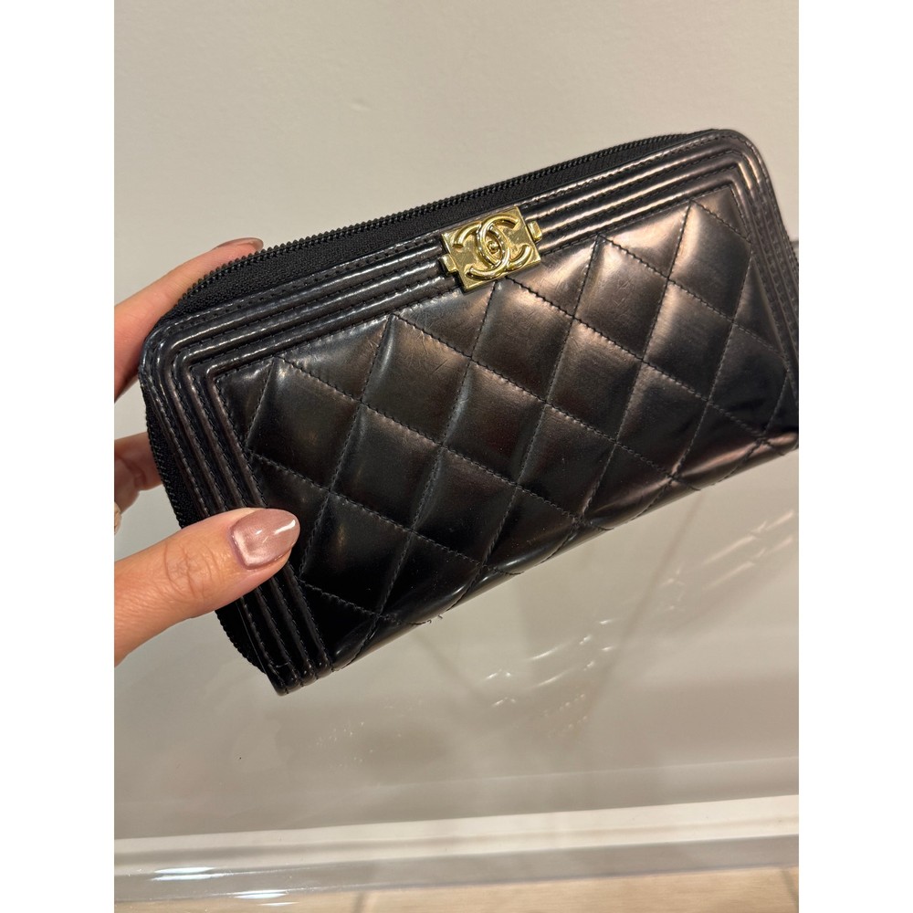 I’ve always been a fan of Boy Chanel since it came out - so when accessories started to follow the handbags, it was a fabulous alternative to carrying the classic interlocking CCs. Full size zip around wallet with plenty of organization, coated calfskin with a touch of light shiny gold hardware at logo - this is a great accessory to add to your handbag, or carry alone as a clutch. CONDITION : GREAT, FAINT/MINOR MARKS ON EXTERIOR *includes all original packaging