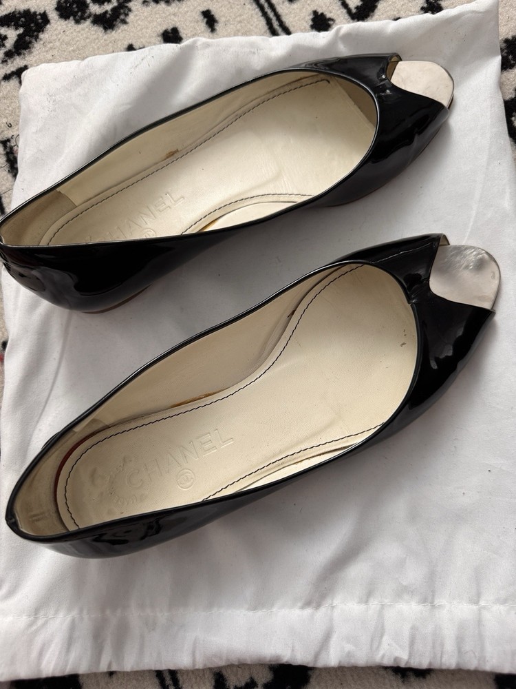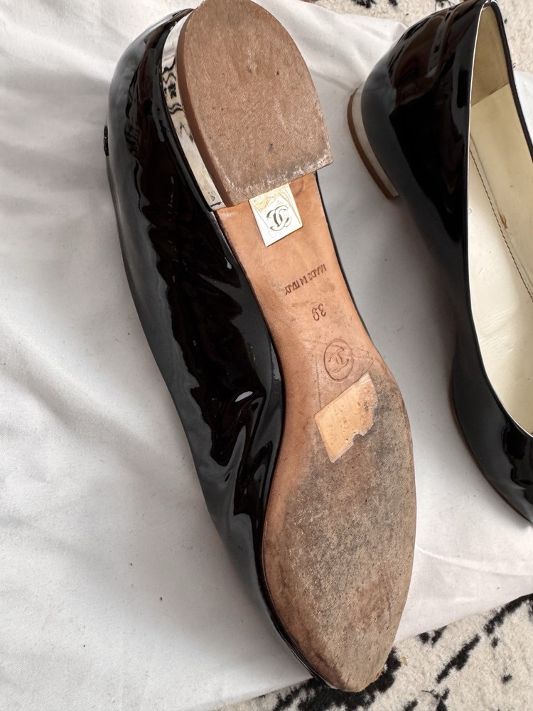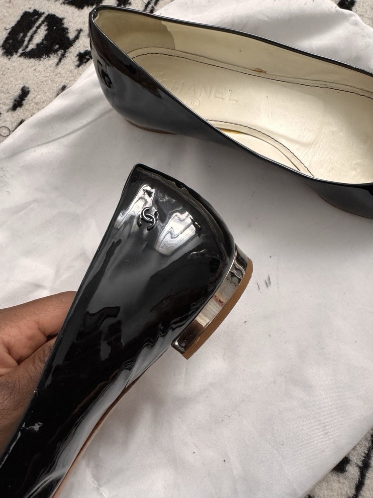 These ballet flats are absolutely stunning—the patent leather shines beautifully and the iconic CC logo adds a touch of luxury. They’re surprisingly comfortable, with a soft leather insole that makes them perfect for all-day wear. The peep toe keeps them fresh for spring and summer, while the sleek black pairs effortlessly with anything. Definitely a wardrobe staple for chic, effortless style!