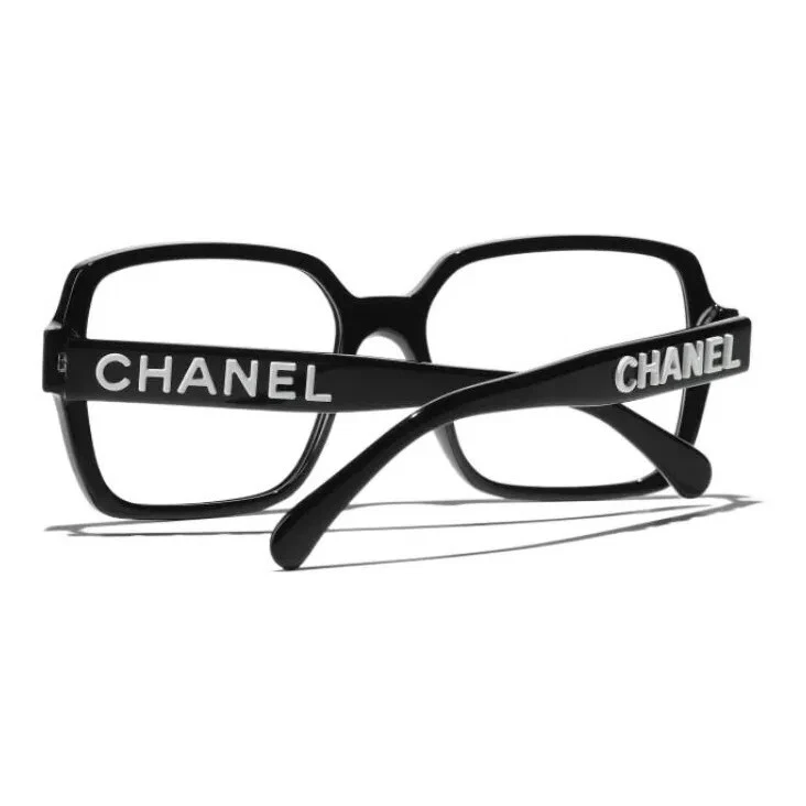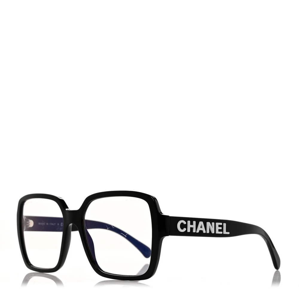 CHANEL CH 5408 1026 Square Eyeglasses Black Frame White Letters Clear Lens New
