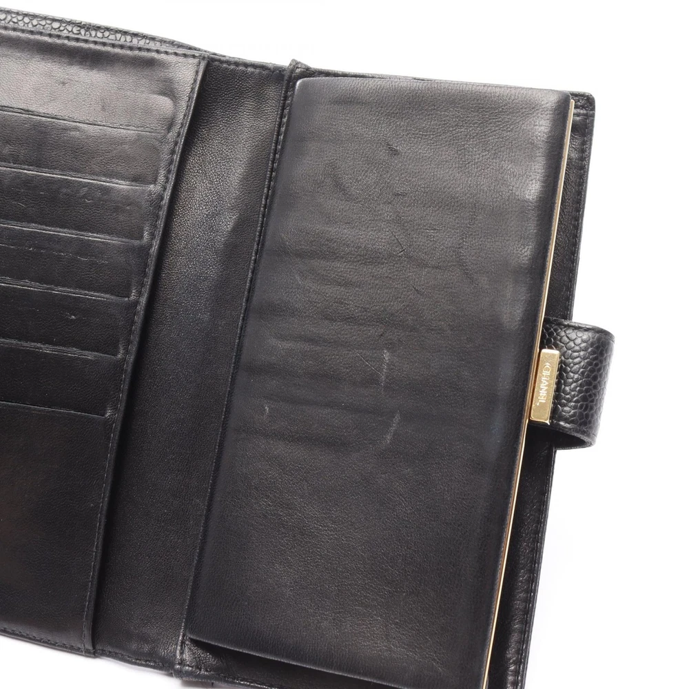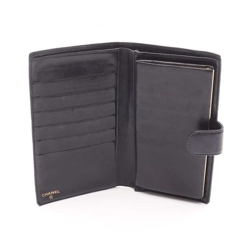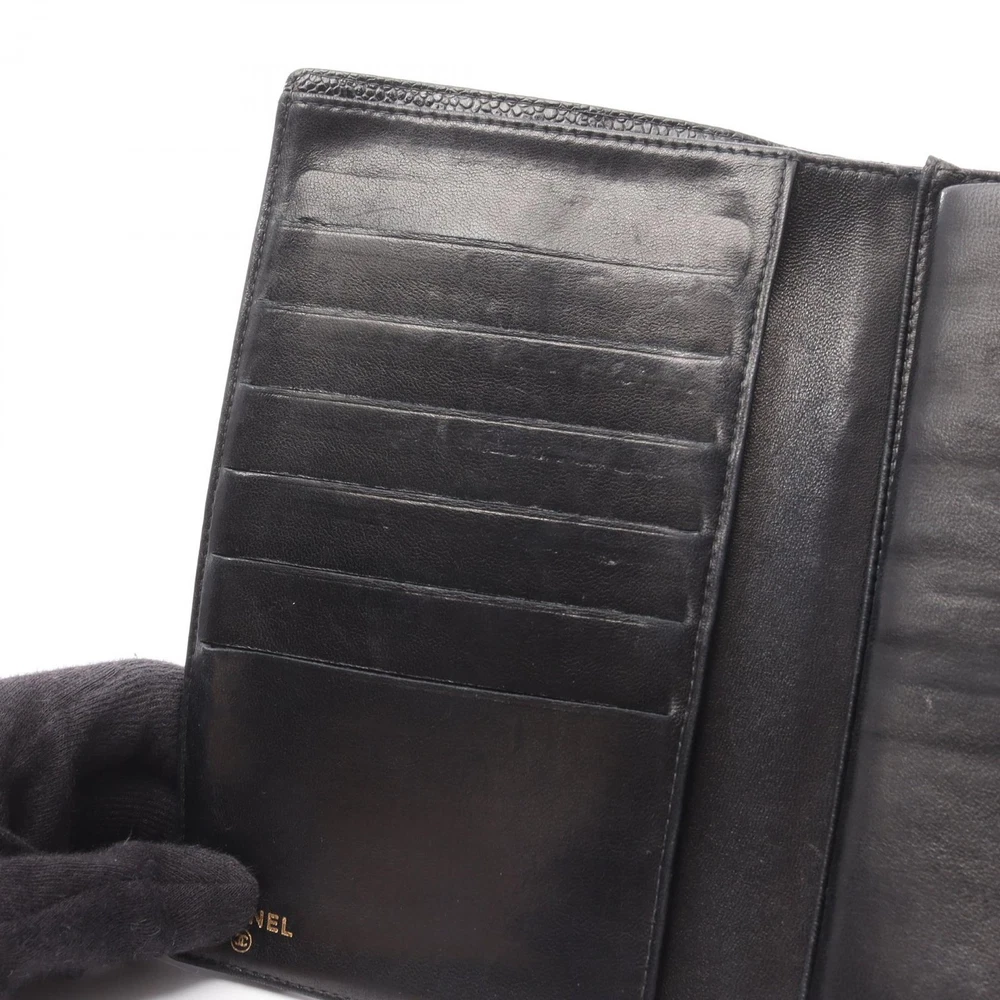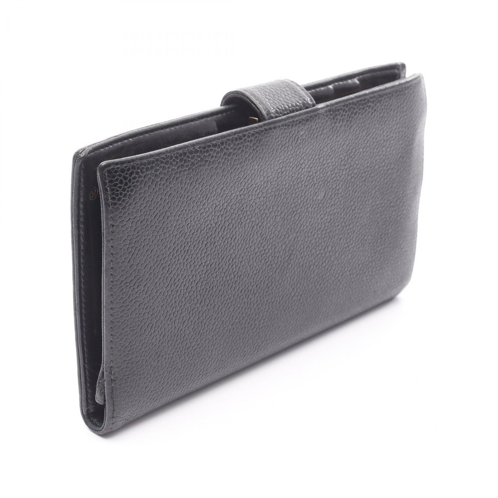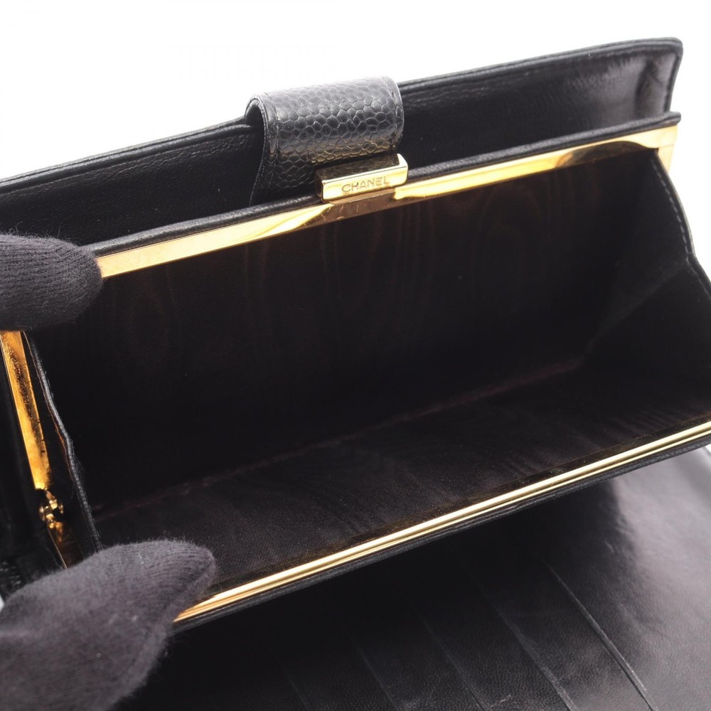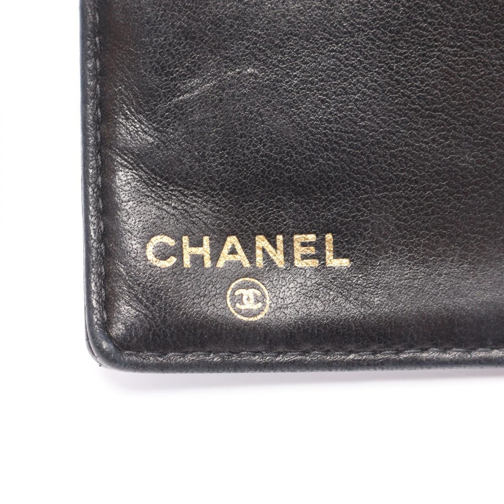 $ 433.6CHANEL No 5 Black Leather Bifold Wallet with Coco Mark 1998 Japan
