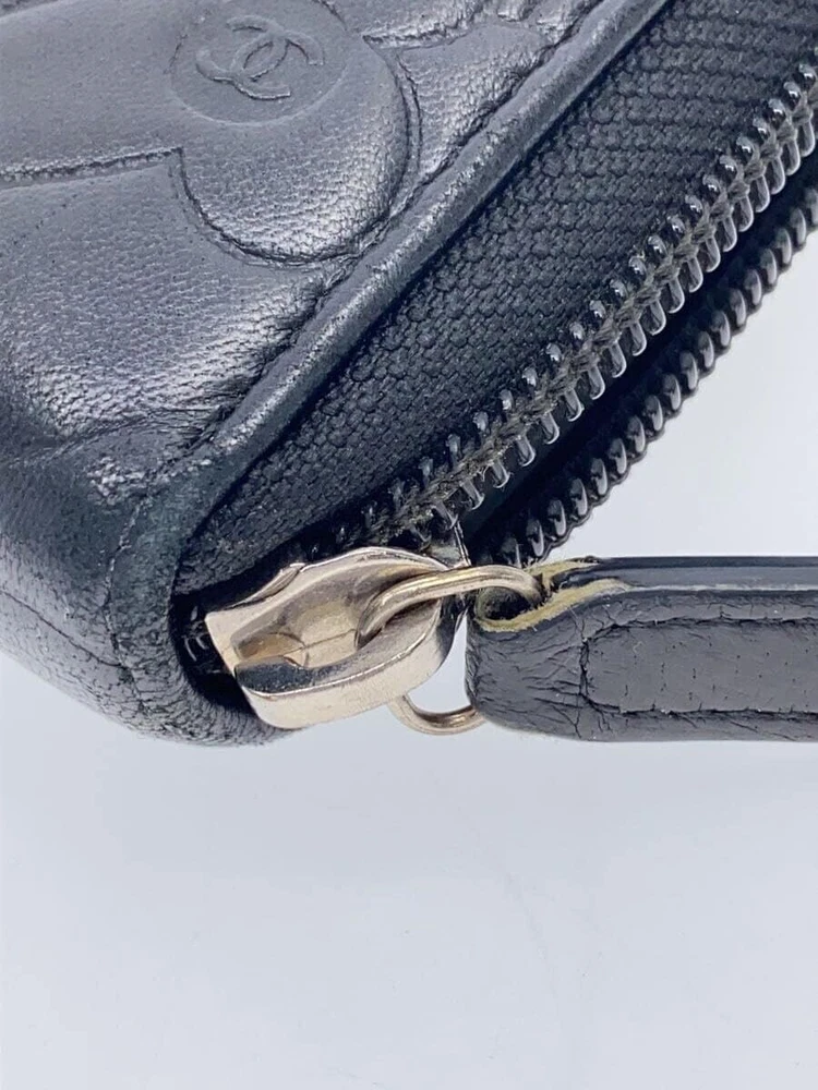 $ 365.24CHANEL A82281 Camellia Embossed Silver CC Zip Wallet Black Pre-Owned