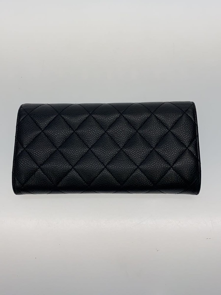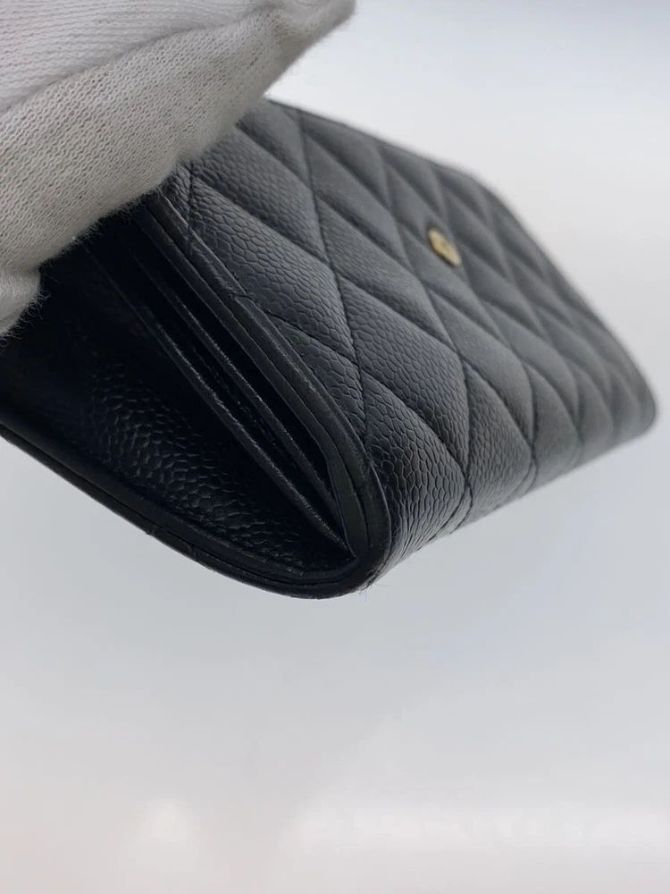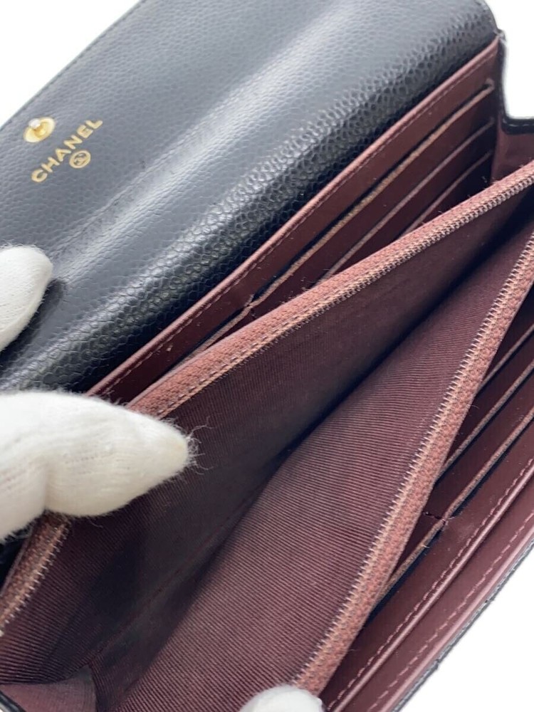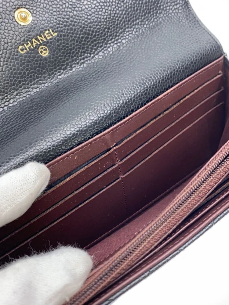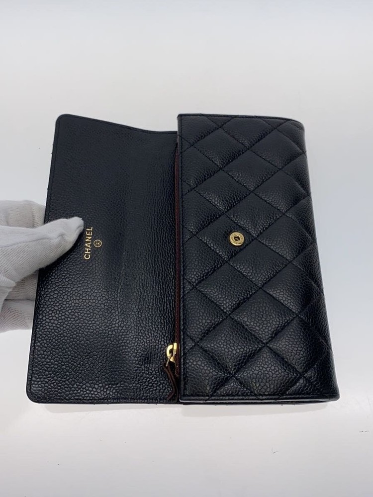 CHANEL Long Wallet AP0242 Matelassé Caviar CC Black Pre-Loved Good Condition!!