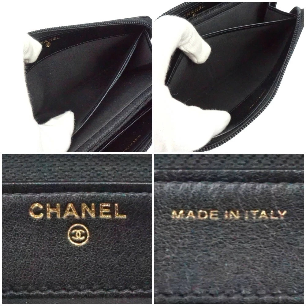 Material: Leather Brand: CHANEL gtin13: Does Not Apply MPN: A70266 Country/Region of Manufacture: Italy UPC: Does Not Apply Style: Round Zipper Size: See Description Item Width: 7.5 in Theme: Logo Department: Unisex Color: Black Features: Credit Card Character: Coco Mark Pattern: Logo Item Length: 4.3 in Type: Wallet Accents: Logo, Zipper