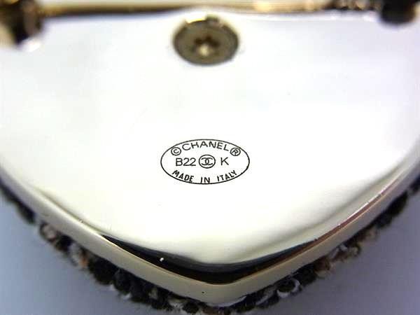 CHANEL Coco Mark B22K Canvas Heart Pin Brooch Badge Black 622312