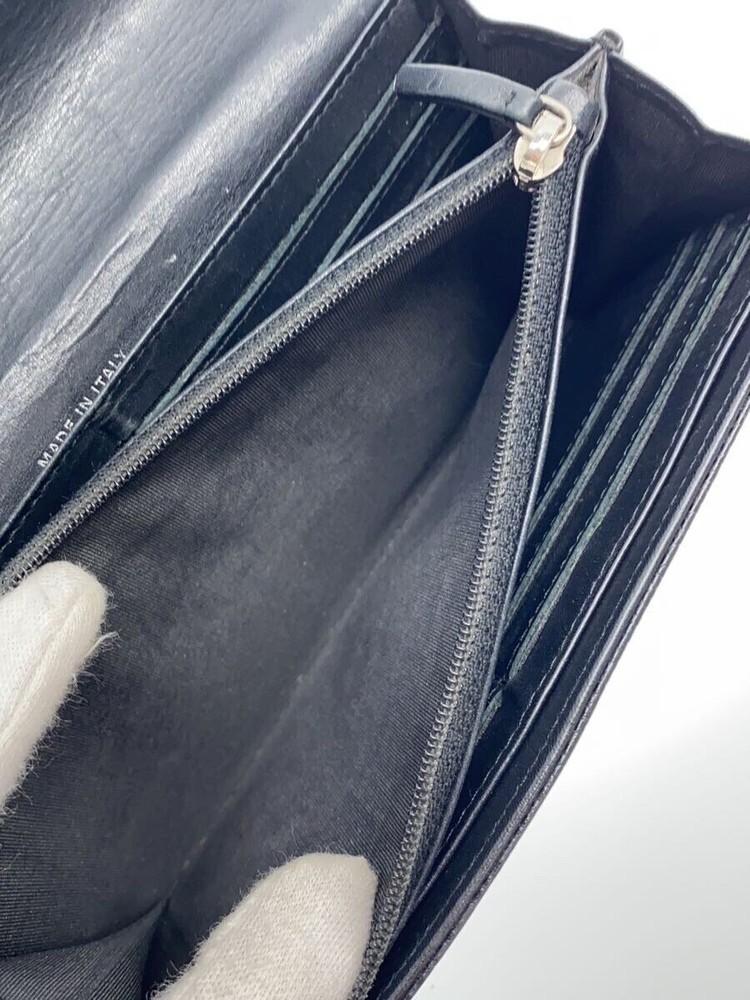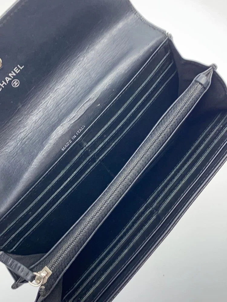 $ 402.6CHANEL 2014 Black Gatoskin Long Flap Wallet Rare Pre-Loved Leather