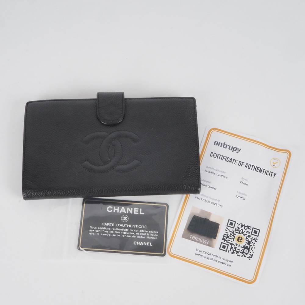 Pixel Safari Fashion eBay Template Free Shipping - 30 Day Return Policy - Guaranteed Authenticity CHANEL Coco Mark Caviar Luxury Designer Wallet Former new price: €700.00 | Now: €495.00 (-29%) Ask question eBay Store DESCRIPTION DETAILS Luxury Designer Wallet ·This beautiful Coco Mark Long wallet by Chanel was handmade in Italy in 2004 from fine caviar calfskin. with 6 card slots, and a metal frame folding pocket. Clean inside and out with light signs of use. Date code and authenticity card present. Comes with Entrupy certificate. ·· For more details and measurements click on DETAILS button. To see the condition and details correctly, all images are high resolution and enlargable. CONDITION N: New with/without tags A+: Like new, used 1 - 2 times A: Very well preserved, treated with care B: Normal signs of use C: Moderate signs of use D: Significant signs of use* E: Needs Repair / Scrap* *We do not offer products in D and E condition. AUTHENTICITY GUARANTEE We authenticate our products with great care and we also work with independent authenticators. We guarantee the authenticity of our products. If you receive an authentic product from us, we will refund 120% of the purchase price. Differential taxation according to § 25a UStG. Therefore no VAT identification on the invoice. wallet for Ladies Style 8222055 Date Code see picture Material Leather Lining Leather Color: Black Closure Flap Accessories no Size XL Card Slots 6 Bill Compartments 3 Coin Compartments 1 Height 10cm Length 18cm Made in France Shipping Free shipping takes place within 1 business day by insured DHL Parcel. Payment We accept the following payment methods: Bank transfer (prepayment in advance) Paypal Credit Card Cash on site Return You have the right to cancel this contract within 30 days without giving any reason. Design & Development by Pixel Safari wonderlustking*emporium https://www.ebay.com/str/wonderlustkingemporium #1e1879 fashiontemplate 160