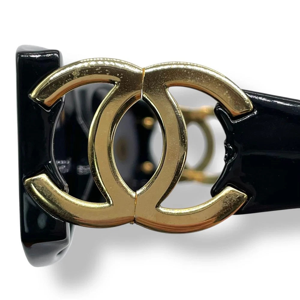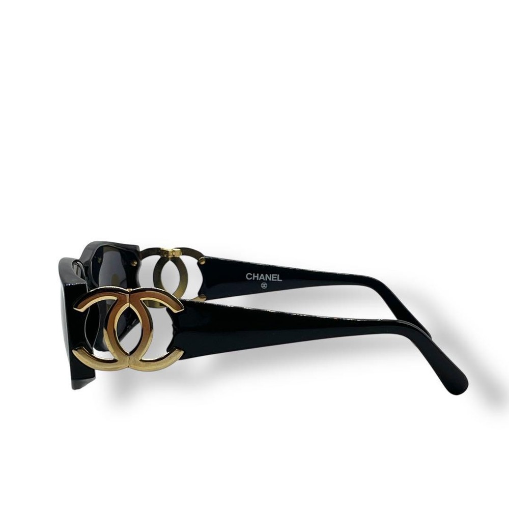 CHANEL Gold Coco Mark Black Sunglasses in Excellent Condition