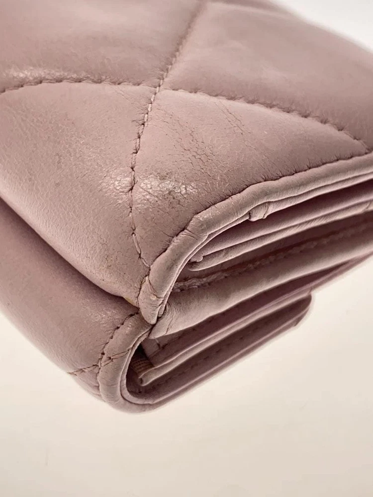 Description CHANEL Tri-Fold Compact Wallet Chanel 19 Diamond Quilted Matelassé Lambskin Leather CC Pink Leather F/S Pre-Loved - Condition There are corner scuffs. There is a sense of use, but there are no problems with use. Please check the photos. - Size and Specifications Actual Size (cm): Height 7.5 Width 10.5 Thickness 3 Other Sizes / Additional Details - Thank you very much for your interest. - Please note that this is a pre-owned (used) product. - As it is also available for sale in stores, the condition may change slightly over time. - There may be minor damage or dirt not visible in the photos, and some accessories may be missing . - We manage our inventory carefully, but in rare cases, the product may sell out . - Depending on your monitor or device, the color may appear slightly different from the actual product. - If you have any questions or concerns , please feel free to contact us anytime. Shipping Information FREE SHIPPING - The product will be shipped from Japan . - Shipping Method: Japan Post or DHL or Fedex - Delivery Period: Usually takes 2–3 weeks (Delivery may be delayed due to global events, weather conditions, customs processes, or other unforeseen circumstances. ) Important Notes - Import duties, taxes, and charges are Not included in the product price or FREE SHIPPING cost. - These charges are the buyer's responsibility . - Please check with your country's customs office to determine what these additional costs will be prior to bidding or buying.