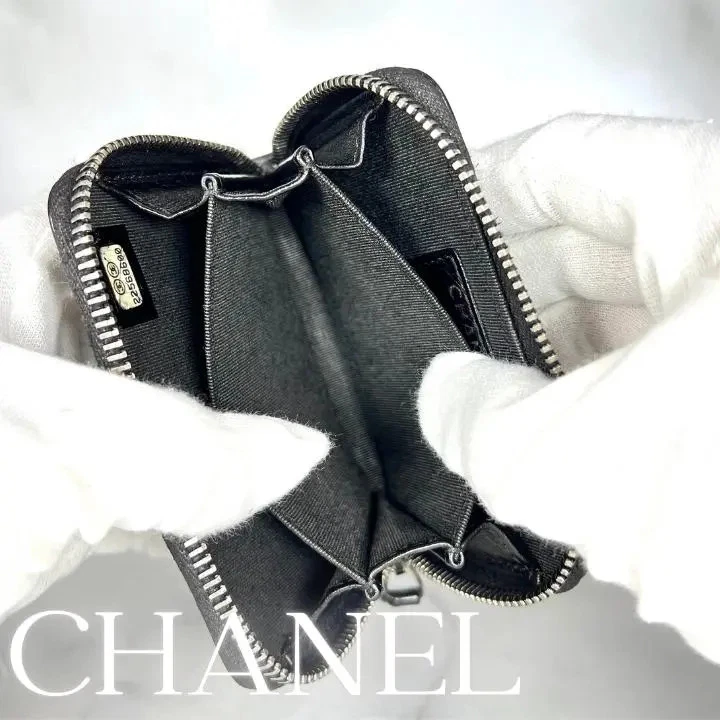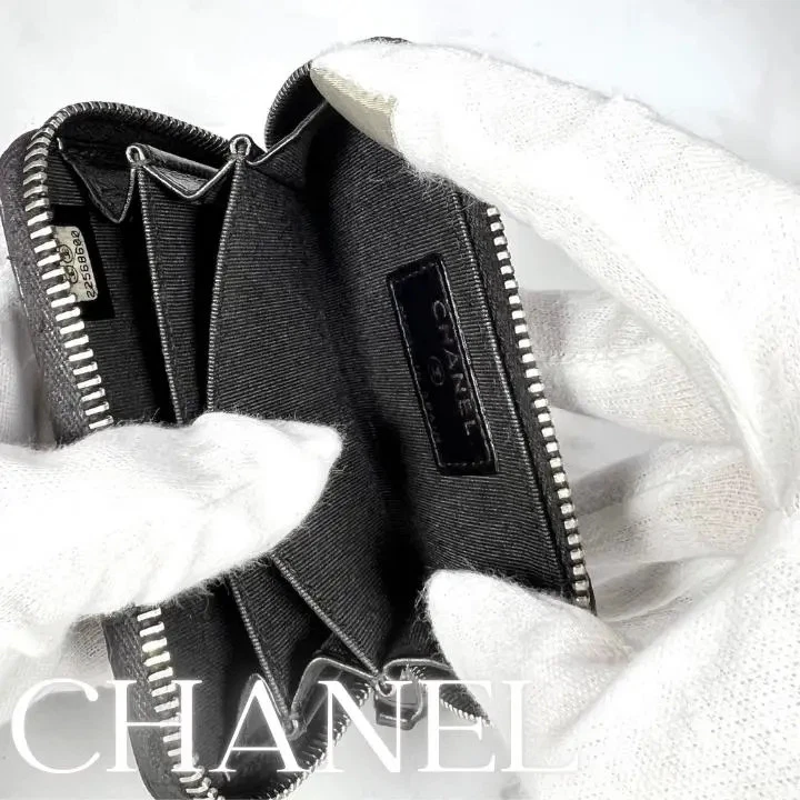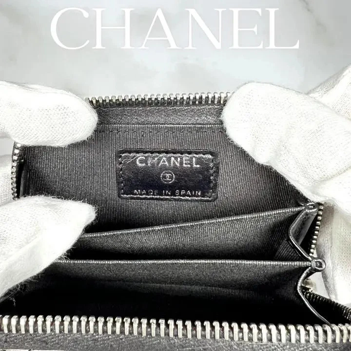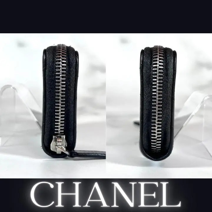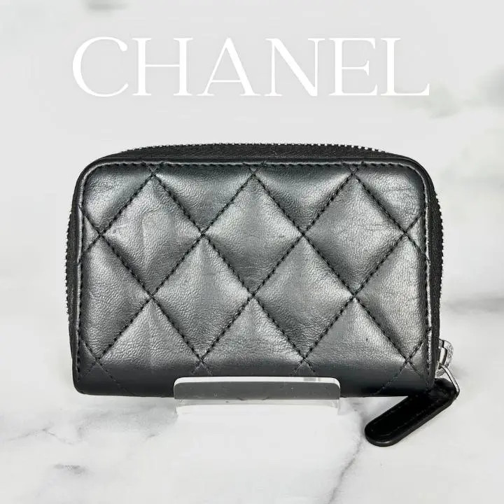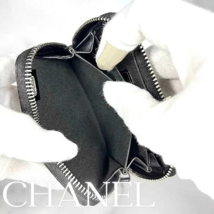 CHANEL Matelasse Lambskin Coin Case Round zipper Wallet Black Used Japan