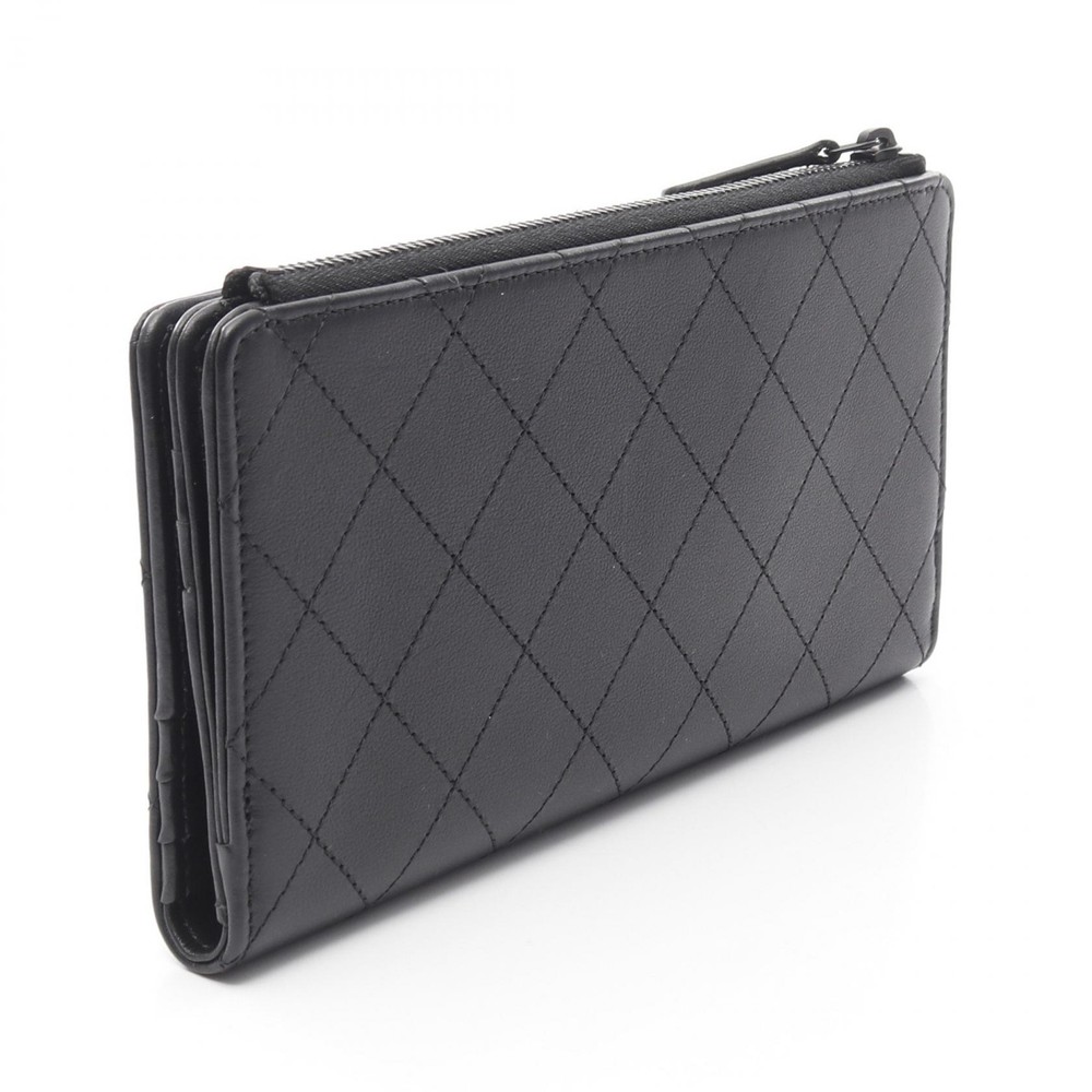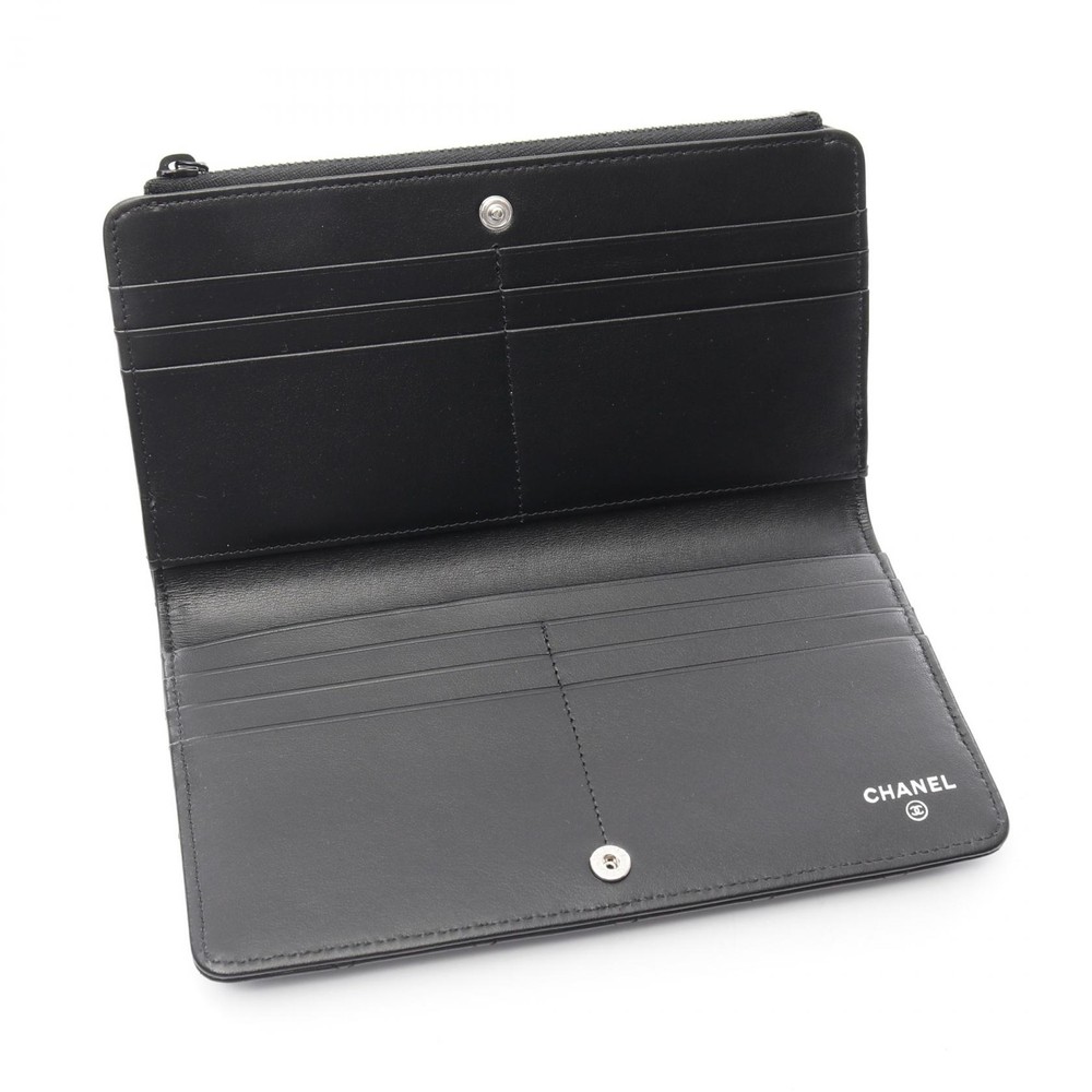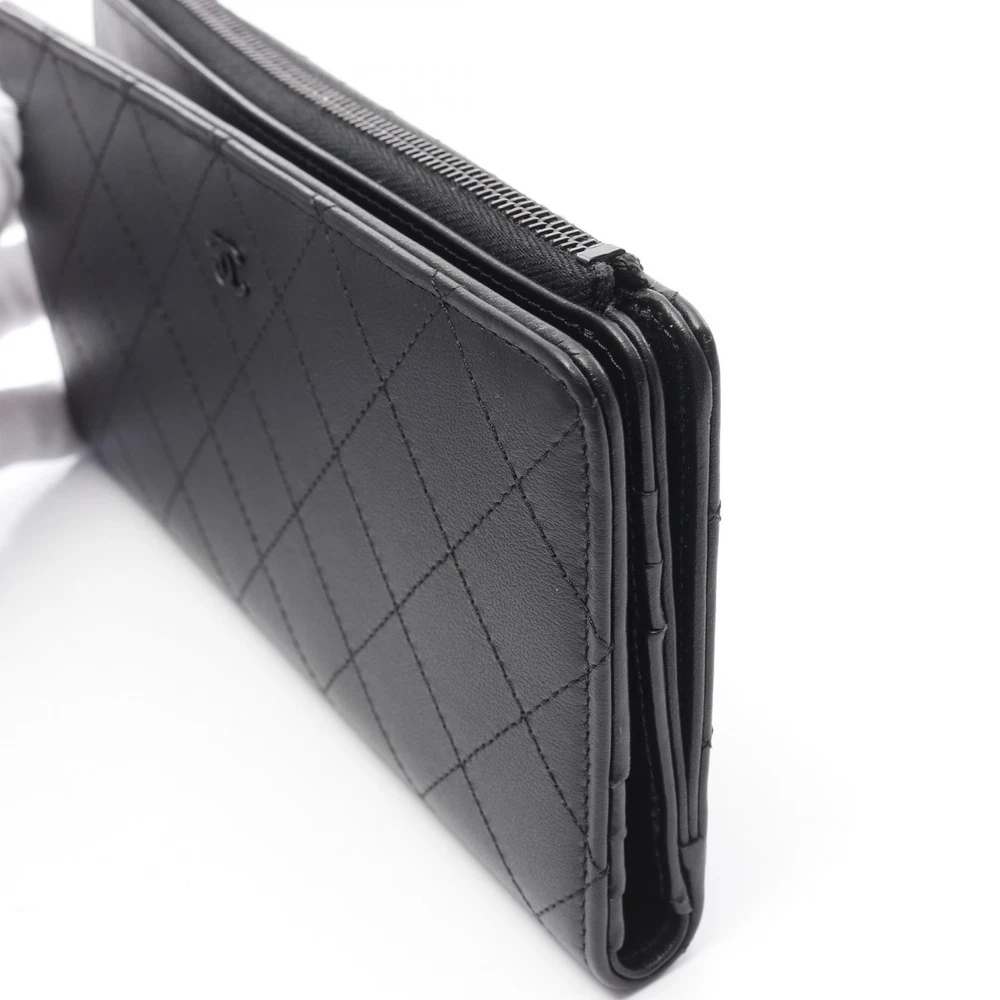CHANEL Matelasse Long Zip Wallet in Gray Leather with Gold Hardware Pre-Owned