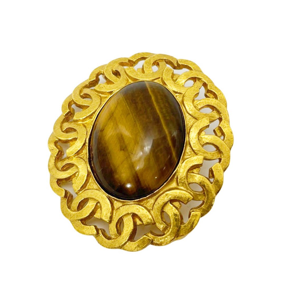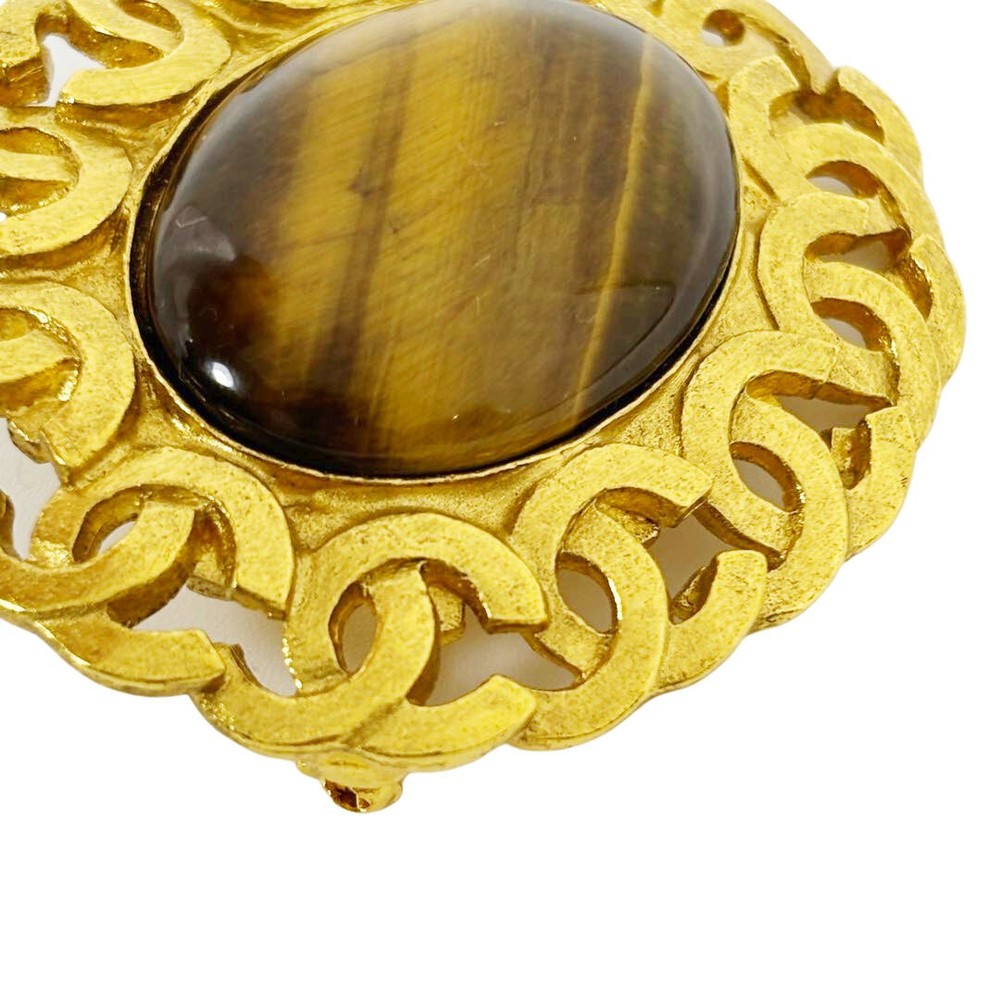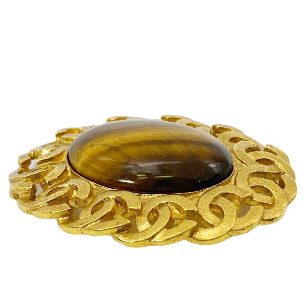 CHANEL Oval Brooch Tiger Eye Metal Coco Mark 95A 697121
