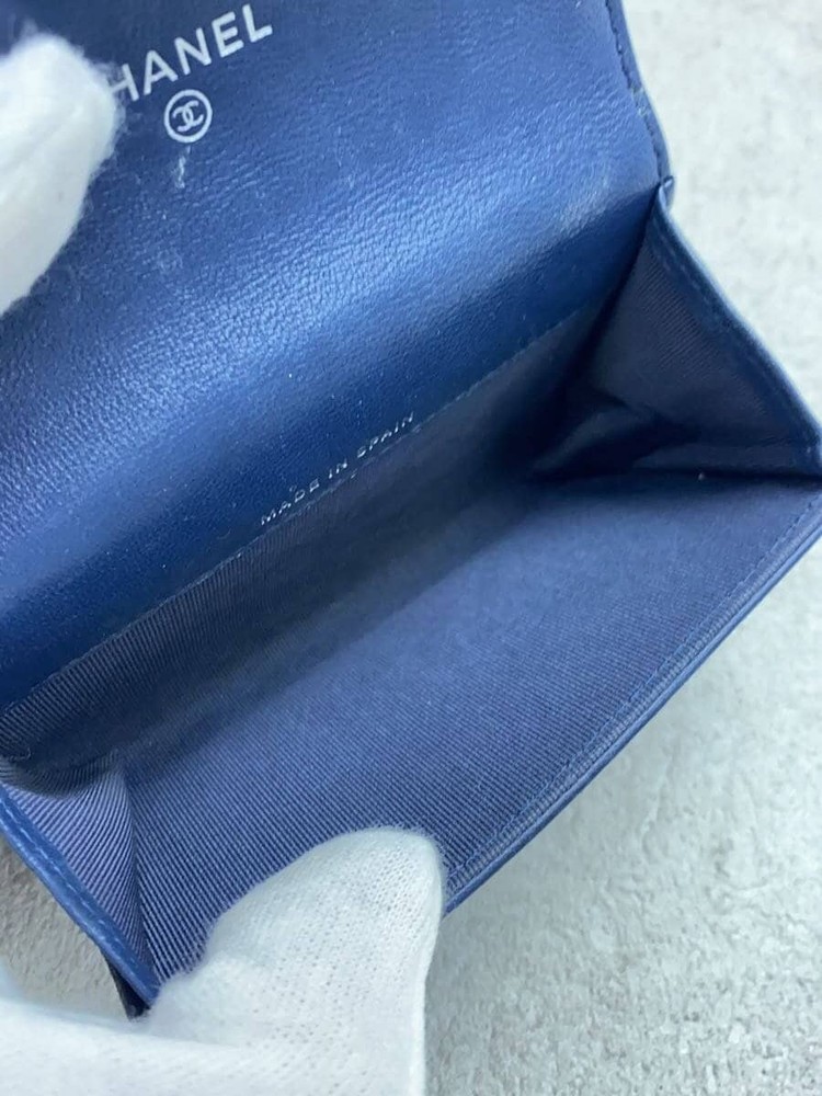Description Authentic CHANEL Business Card Holder / Card Case Matelassé Silver CC Navy Used - Condition This item has some signs of use. Please check the photos. - Size and Specifications Actual Size (cm): Height 7.5 Width 11 Thickness 2 Other Sizes / Additional Details - Thank you very much for your interest. - Please note that this is a pre-owned (used) product. - As it is also available for sale in stores, the condition may change slightly over time. - There may be minor damage or dirt not visible in the photos, and some accessories may be missing . - We manage our inventory carefully, but in rare cases, the product may sell out . - Depending on your monitor or device, the color may appear slightly different from the actual product. - If you have any questions or concerns , please feel free to contact us anytime. Shipping Information FREE SHIPPING - The product will be shipped from Japan . - Shipping Method: Japan Post or DHL or Fedex - Delivery Period: Usually takes 2–3 weeks (Delivery may be delayed due to global events, weather conditions, customs processes, or other unforeseen circumstances. ) Important Notes - Import duties, taxes, and charges are Not included in the product price or FREE SHIPPING cost. - These charges are the buyer's responsibility . - Please check with your country's customs office to determine what these additional costs will be prior to bidding or buying.