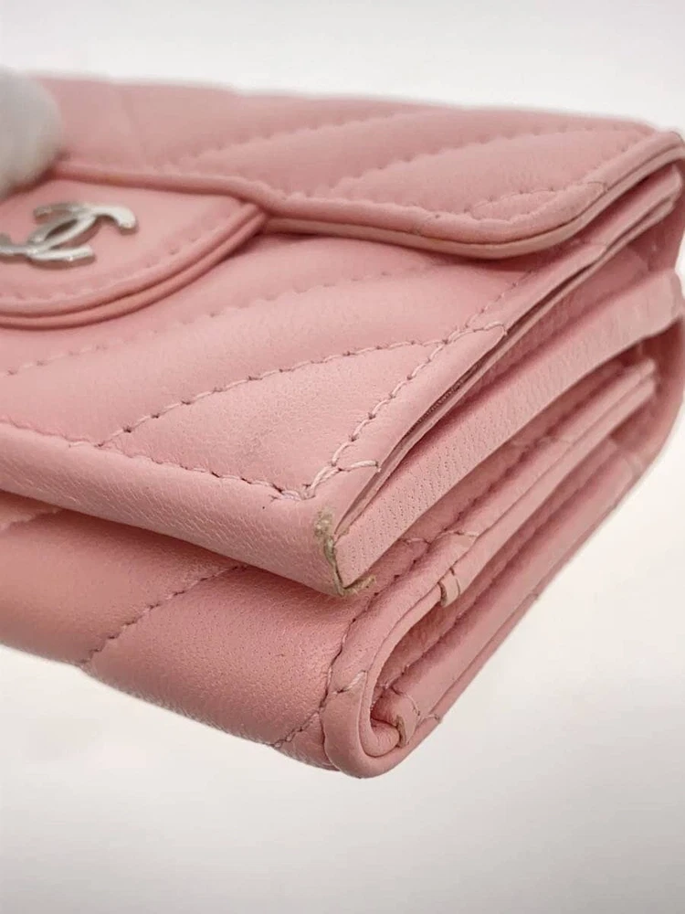 Description CHANEL Tri-Fold Compact Wallet Chevron Quilted V‑Stitch CC Pink Leather F/S Pre-Loved - Condition This item has some signs of use. Please check the photos. - Size and Specifications Actual Size (cm): Height 7.5 Width 10.5 Thickness 3.5 Other Sizes / Additional Details - Thank you very much for your interest. - Please note that this is a pre-owned (used) product. - As it is also available for sale in stores, the condition may change slightly over time. - There may be minor damage or dirt not visible in the photos, and some accessories may be missing . - We manage our inventory carefully, but in rare cases, the product may sell out . - Depending on your monitor or device, the color may appear slightly different from the actual product. - If you have any questions or concerns , please feel free to contact us anytime. Shipping Information FREE SHIPPING - The product will be shipped from Japan . - Shipping Method: Japan Post or DHL or Fedex - Delivery Period: Usually takes 2–3 weeks (Delivery may be delayed due to global events, weather conditions, customs processes, or other unforeseen circumstances. ) Important Notes - Import duties, taxes, and charges are Not included in the product price or FREE SHIPPING cost. - These charges are the buyer's responsibility . - Please check with your country's customs office to determine what these additional costs will be prior to bidding or buying.